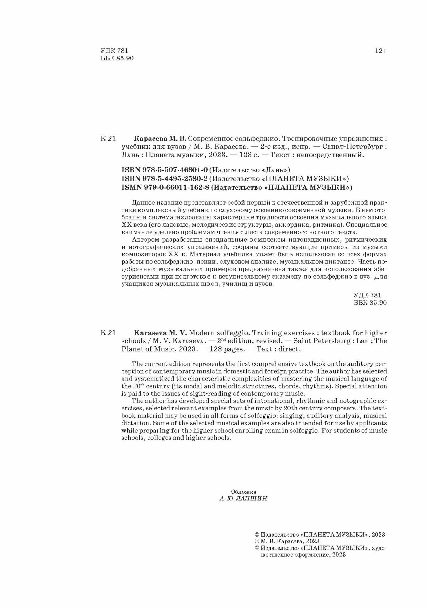 Современное сольфеджио. Тренировочные упражнения. Учебник для вузов (Карасева Марина Валериевна); Планета Музыки, 2023
