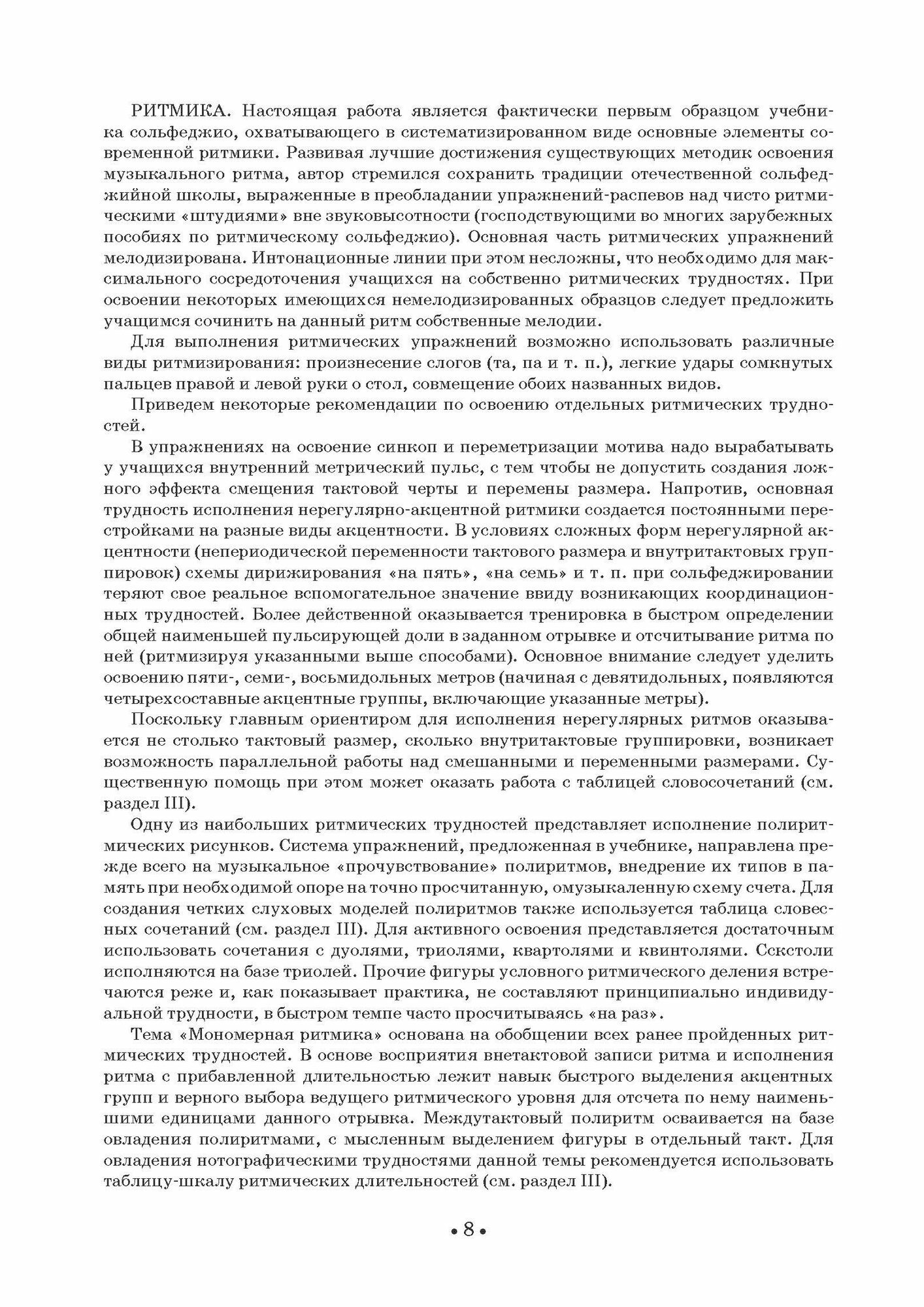 Автором разработаны специальные комплексы интонационных, ритмических и нотографических упражнений, собраны соответствующие примеры из музыки композиторов ХХ в. Материал учебника может быть использован во всех формах работы по сольфеджио: пении, слуховом анализе, музыкальном диктанте. Часть подобранных музыкальных примеров предназначена также для использования абитуриентами при подготовке к вступительному экзамену по сольфеджио в вуз. Для учащихся музыкальных школ, училищ и вузов.