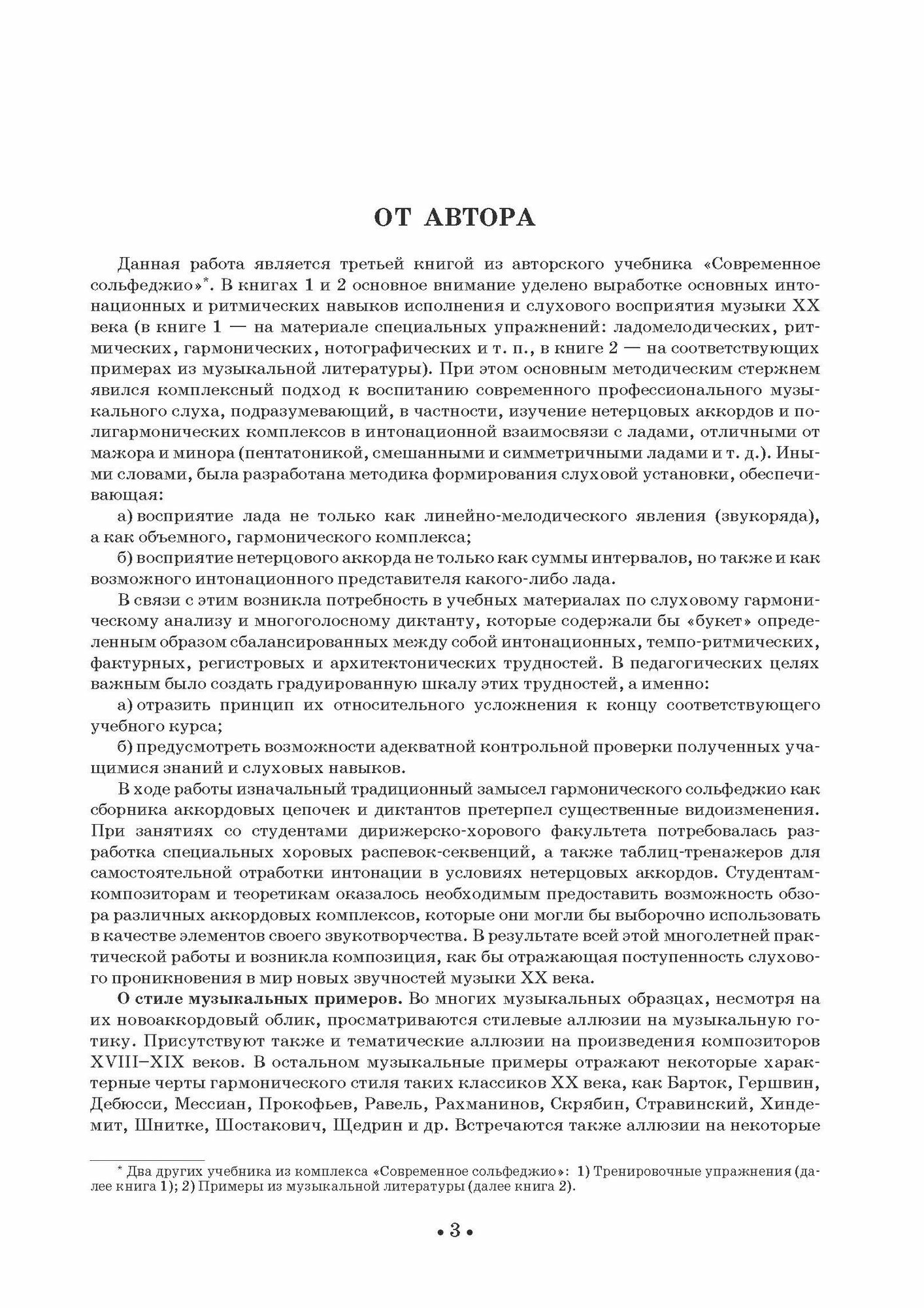 Данное издание представляет собой первый в отечественной и зарубежной практике комплексный учебник по слуховому освоению современной музыки. В нем отобраны и систематизированы характерные трудности освоения музыкального языка ХХ века (его ладовые, мелодические структуры, аккордика, ритмика). Специальное внимание уделено проблемам чтения с листа современного нотного текста.