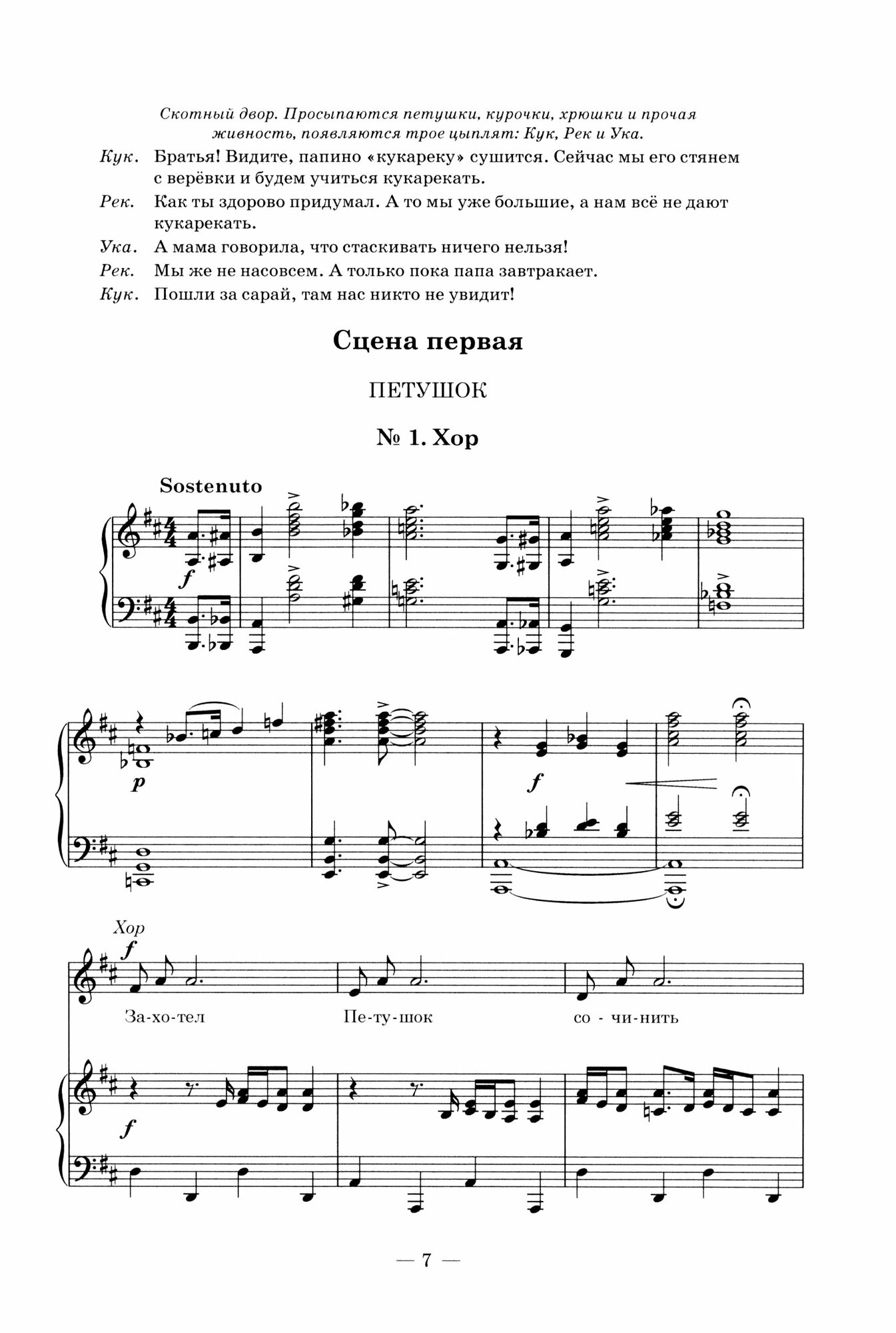Маленький мюзикл «Кукареку», персонажами которой выступают Петушок, Наседка, цыплята, Кошка и Хрюшка, знакомит детей с жанрами сольного и хорового пения.