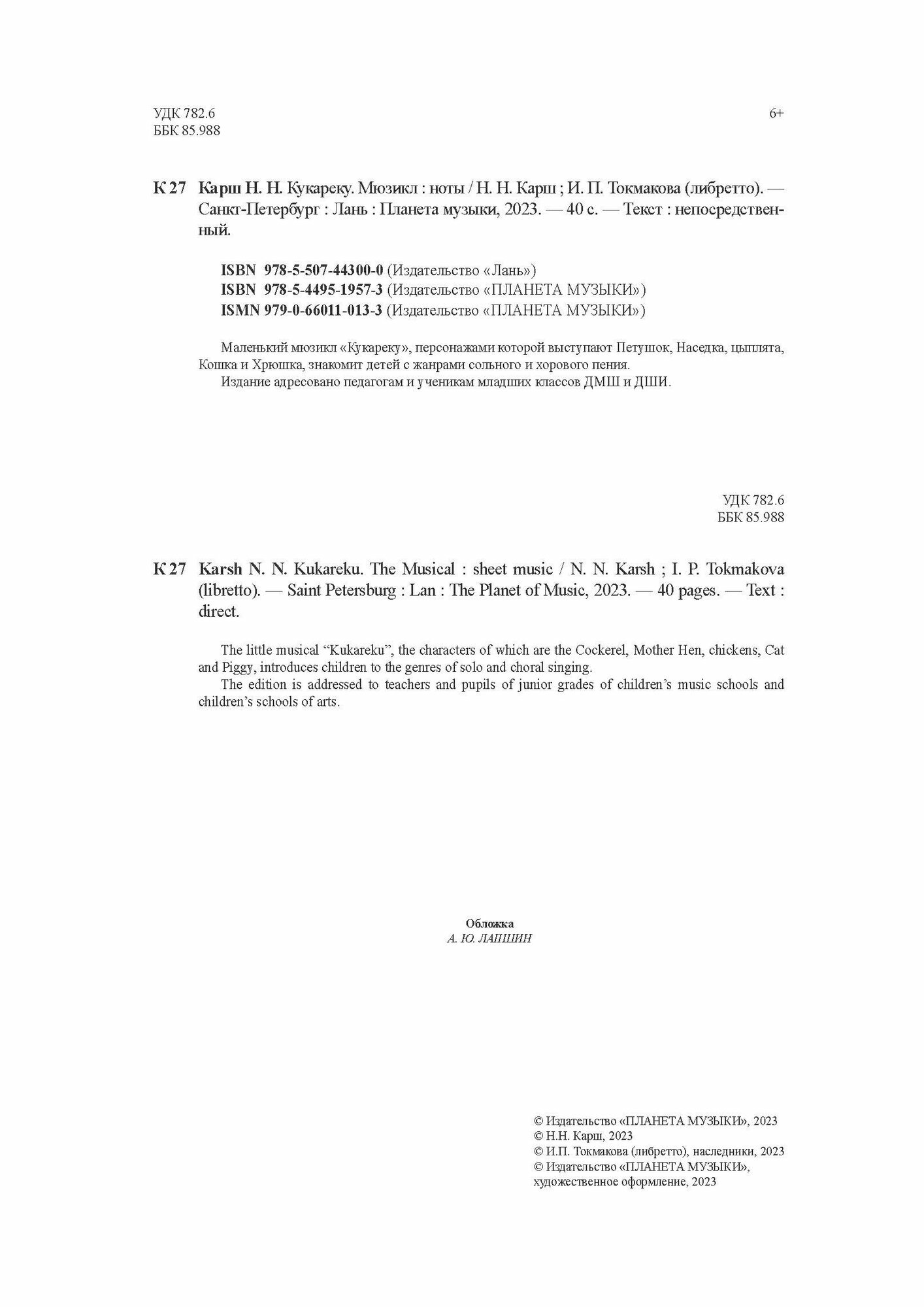 Книга: Кукареку. Мюзикл. Ноты (Н. Н. Карш); Издательство «Планета музыки», 2023