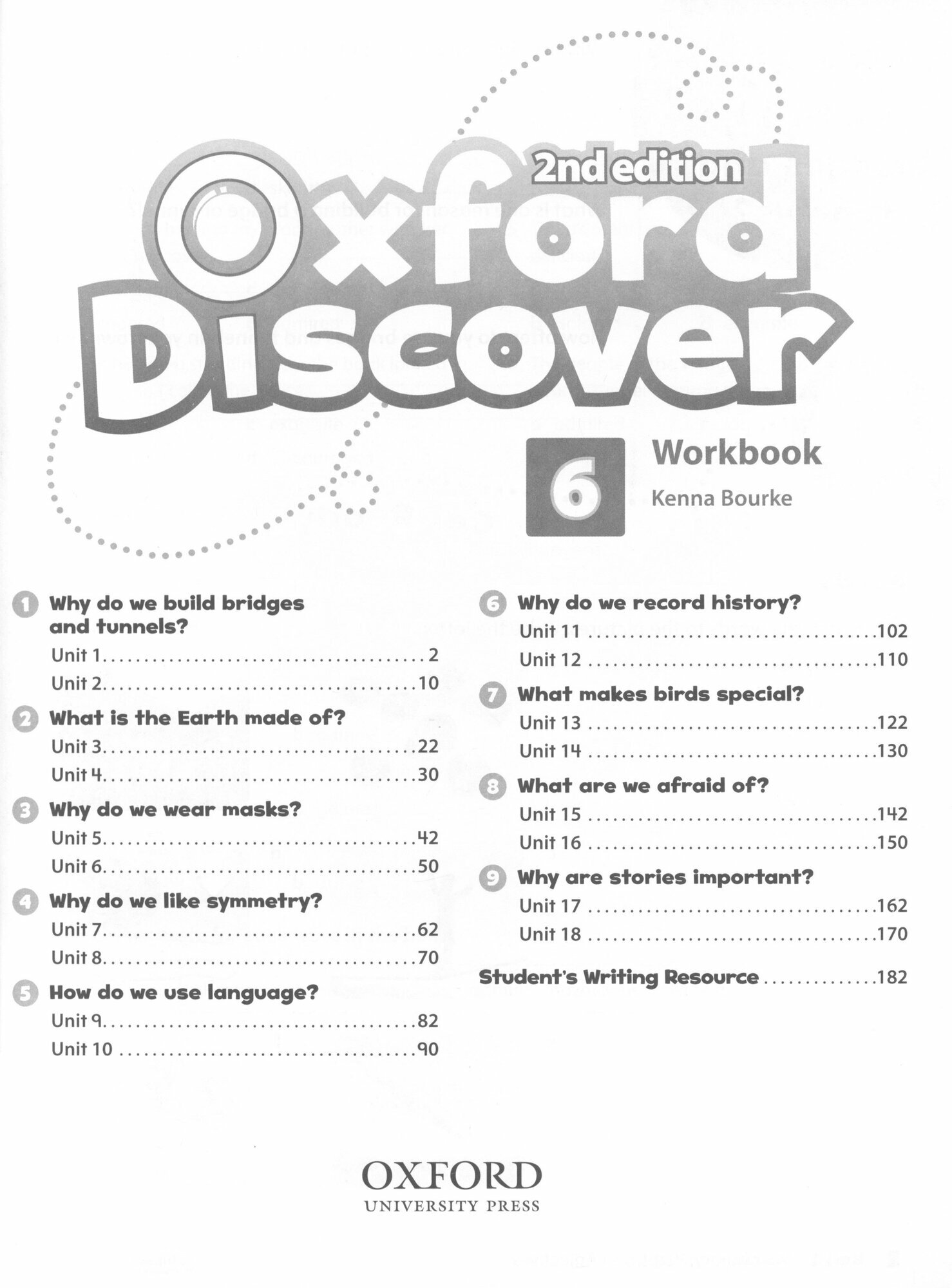 The Oxford Discover Workbook is the perfect partner to the Student's Book, and helps consolidate the material taught in class. It contains further lesson-by-lesson practice for students to complete in their own time, as well as reference material for those who need extra support.