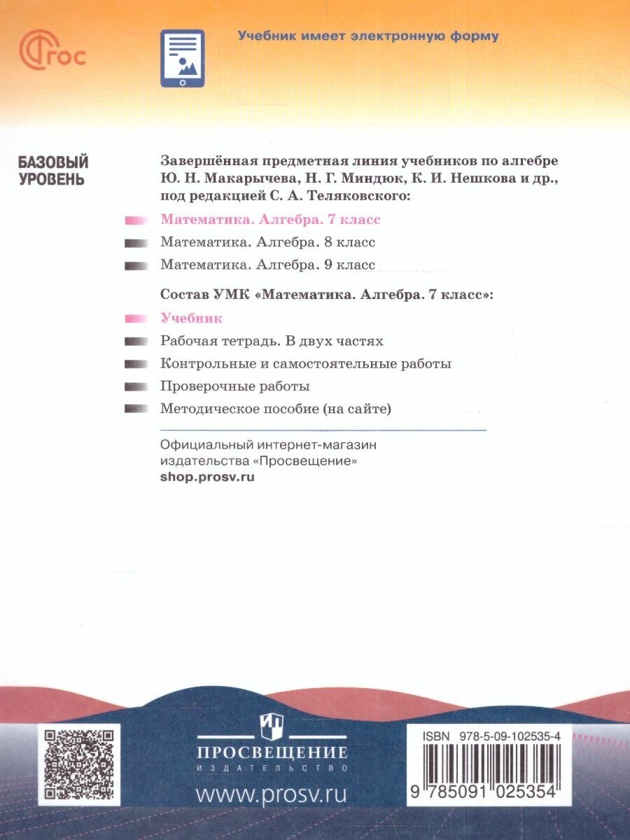 Математика. Алгебра. 7 класс. Учебник. Базовый уровень (Константин Иванович Нешков, Нора Григорьевна Миндюк, Юрий Николаевич Макарычев); Просвещение, 2025