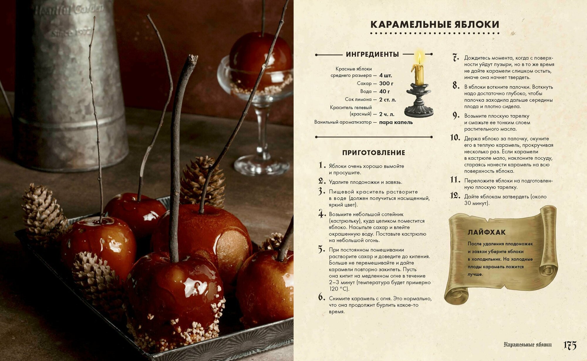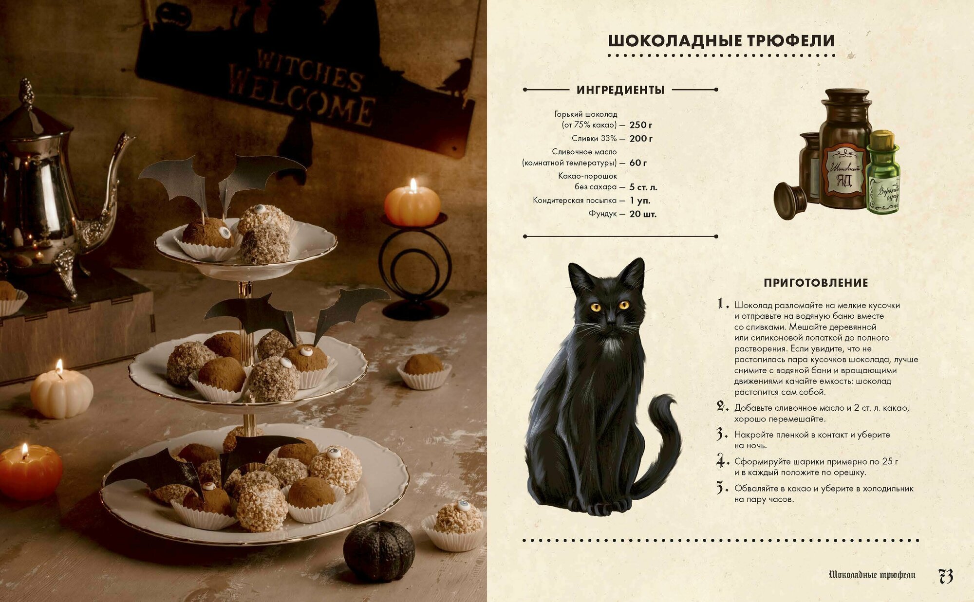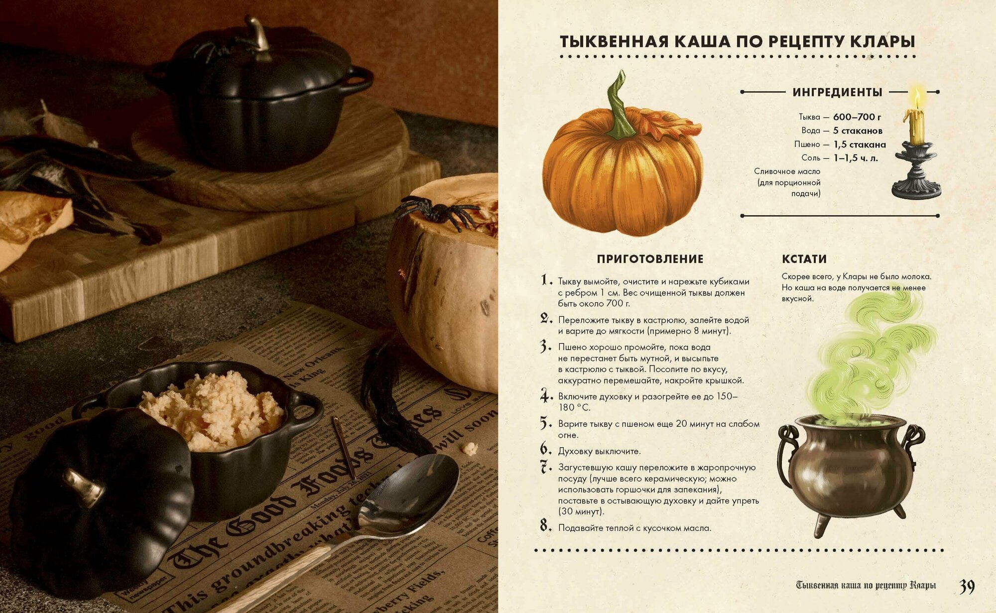 Каждый рецепт сопровождается цитатой из основной истории, и это отличный повод вновь погрузиться в любимый сюжет и проникнуться таинственной атмосферой Хэллоуина.