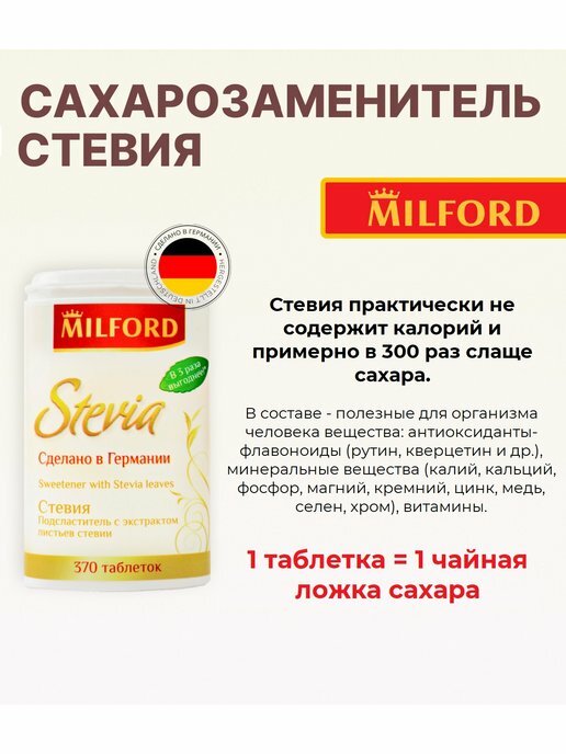 Сервис сравнения цен СкидкаГИД предлагает сравнить цены на товар «Заменитель сахара Milford Стевия 370 г»