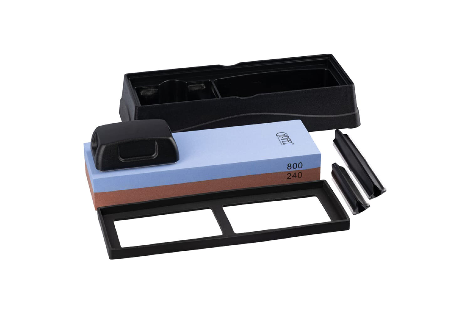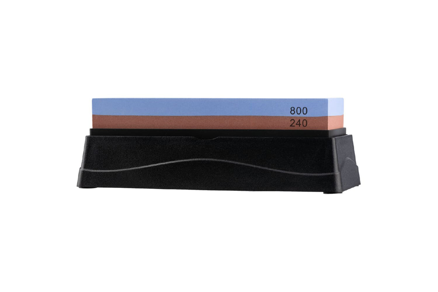 Высококачественные камни с зернистостью 240 и 800 грит обеспечат точность и ровность заточки. Зернистость 240 используется для восстановления формы режущей кромки и грубой заточки. Зернистость 800 используется для полировки кромки.