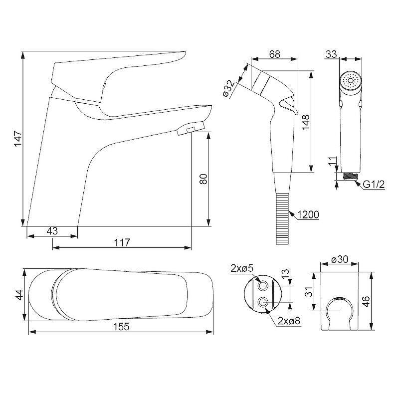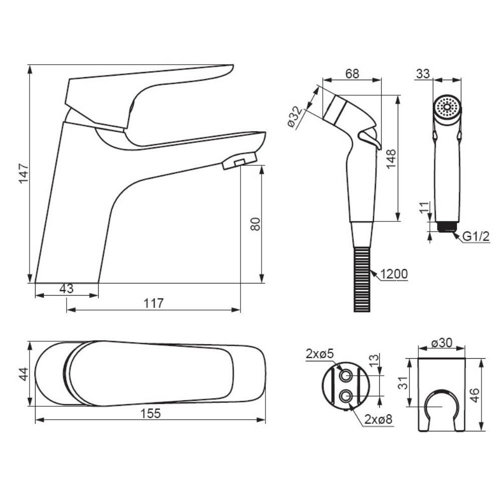 - 1 режим гигиенического душа: Spray.