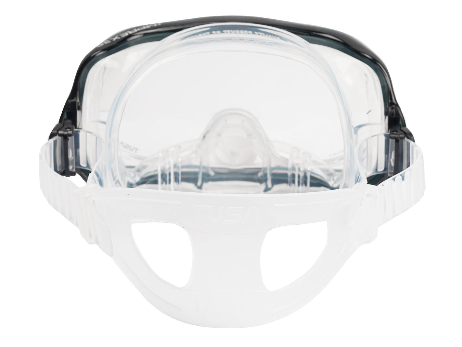 Маска для плавания с клапаном TUSA Imprex 3D Hyperdry (M-32) Система Hyperdry (односторонний дренажный клапан) для легкого очищения маски от воды Самое легкое очищение маски от воды обеспечено нашей запатентованной системой Imprex 3D Hyperdry с безупречно работающим клапаном. Все, что необходимо сделать для удаления воды из-под маски - это выдох носом. Как только маска очистилась, клапан закрывается. Трехлинзовый дизайн со сверхшироким обзором Маска М-32 характеризуется усовершенствованным эргономичным дизайном, который повторяет контуры вашего лица, обеспечивая непревзойденный комфорт. Рамка маски М-32 имеет облегченную конструкцию и низкопрофильный дизайн, и вместе с тем предоставляет исключительный обзор. Боковые линзы для периферийного обзора Маска М-32 обеспечивает исключительный обзор благодаря широкой фронтальной и двум боковым линзам. Боковые линзы улучшают периферийный обзор.