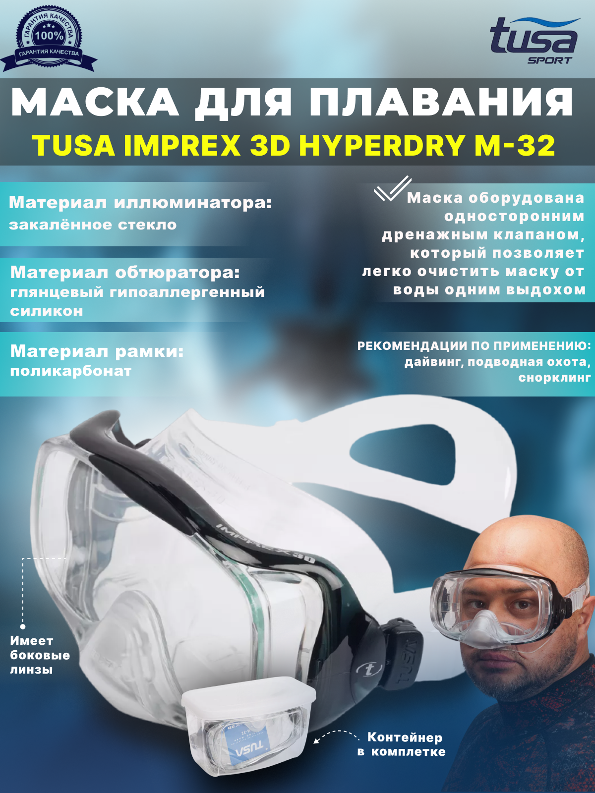 Маска для плавания TusaImprex 3D Hyperdry Черный (M-32-T0H-BK) (размер: One Size)