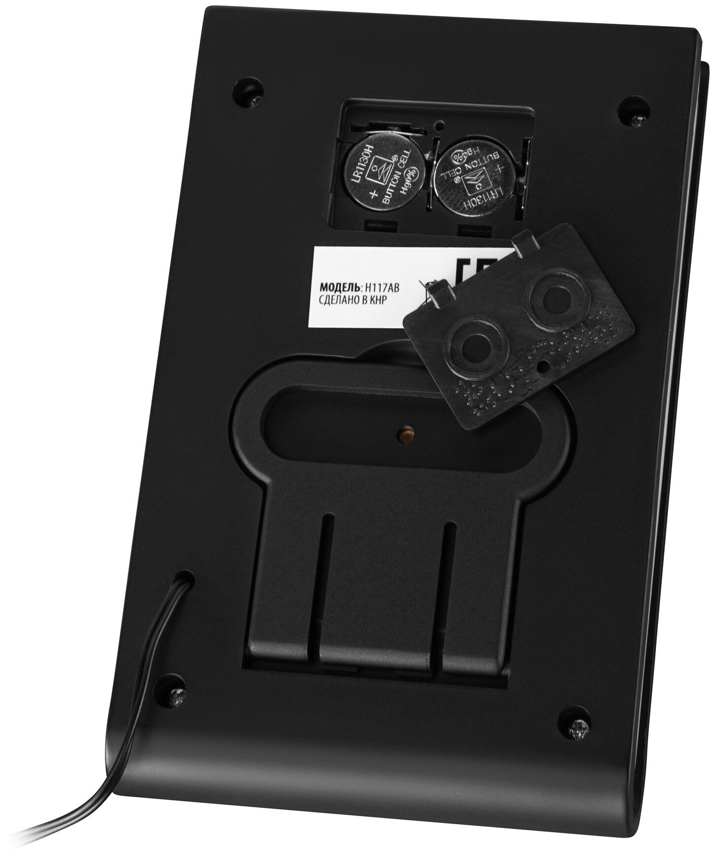 - показатель температуры завышает на полтора - два градуса, нет крепления на стену,только поставить куда нибудь часы спешат Присутствует только один датчик измерения температуры!!!