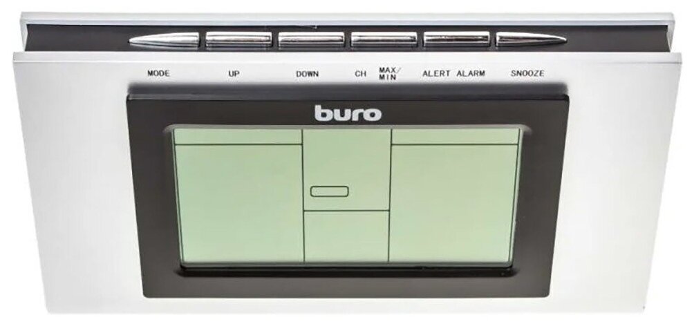 Метеостанция Buro укомплектована беспроводным сенсором, сохраняющим устойчивое соединение с основным блоком на расстоянии до 80 метров. Для повышения точности измерений к ней можно подключить два дополнительных датчика. Она определяет температуру и влажность воздуха как в помещении, так и за его пределами, одновременно отображая эти показатели на большом дисплее. Кроме того, в устройстве предусмотрены функции электронных часов, календаря, будильника и индикатора фаз луны.
