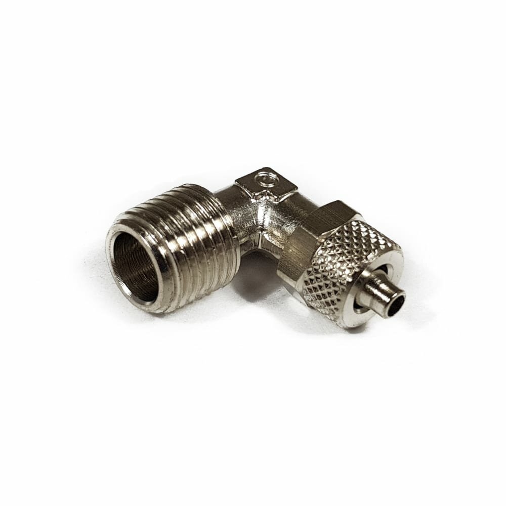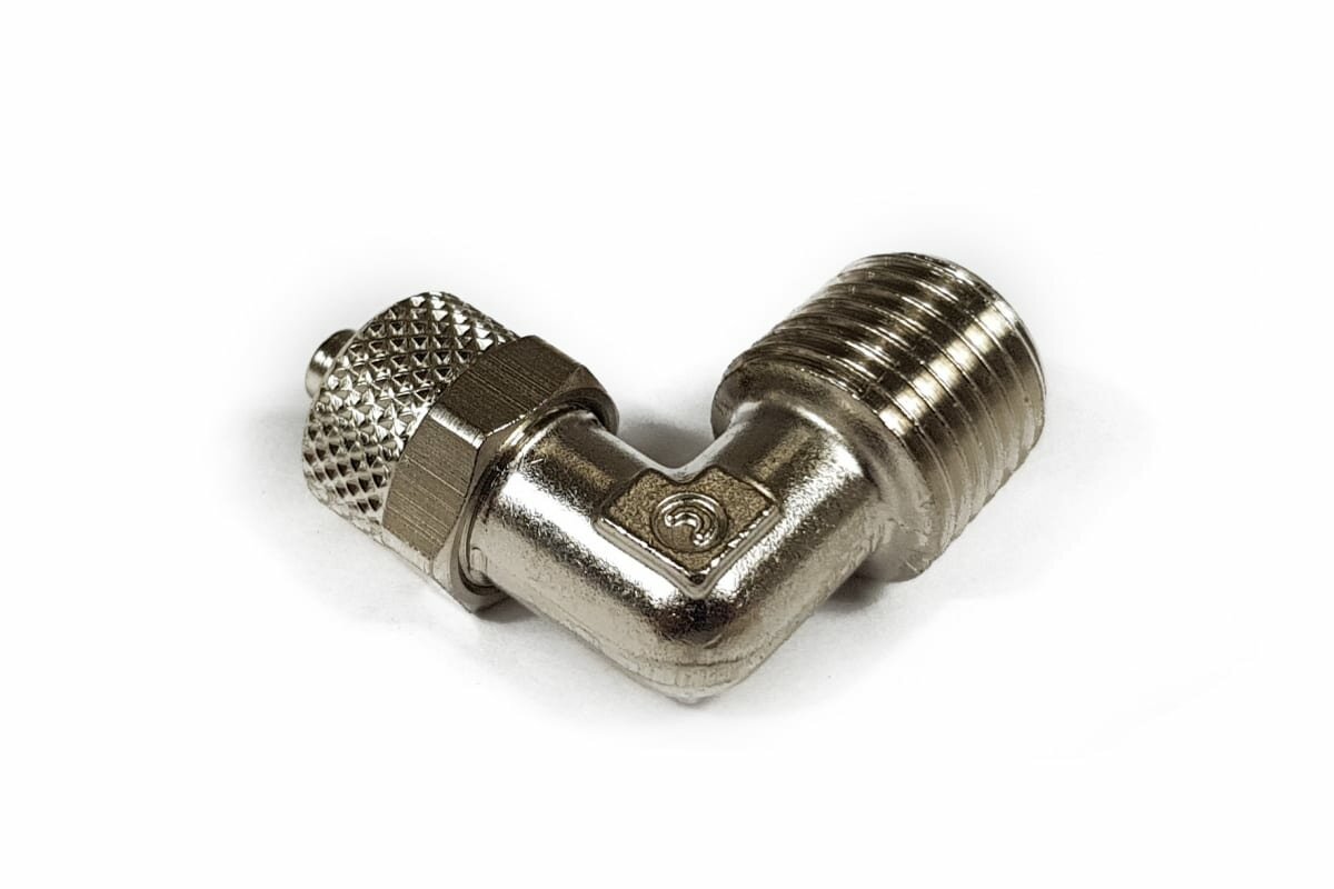 Фитинг с накидной гайкой L-образный под Ø10/8 с наружной резьбой R1/4" (Ni+La) Camozzi 1500 10/8-1/4
