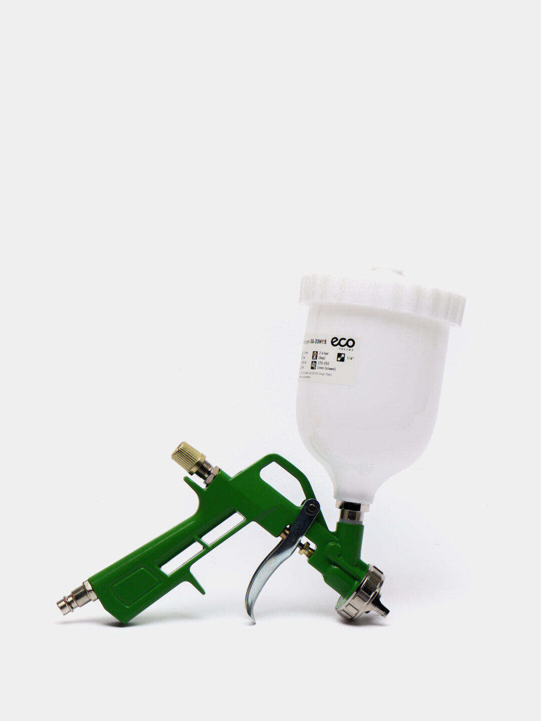 Набор пневмоинструмента 5 предметов ECO - предназначен для покрасочных, промывочных, продувочных работ, а также для подкачки шин.Преимущества Краскораспылитель SG-33H15 (HVLP) имеет верхний пластиковый бак на 600 мл; Регулировка подачи материала; Быстросъемное соединение; Сопло: 1,5 мм.