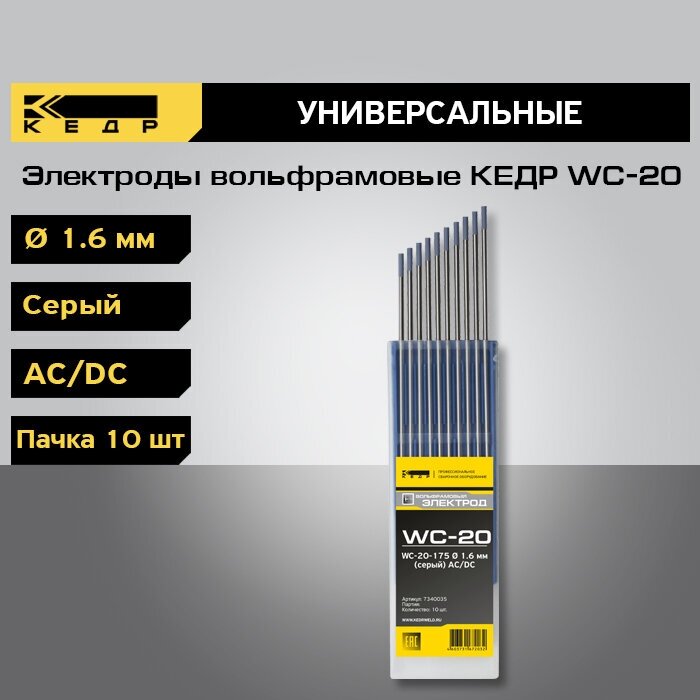 На сегодняшний день товар «Электрод вольфрамовый КЕДР WC-20 Ø4,0 (Серый)» можно купить с кешбеком в 1 магазине: Яндекс.Маркет