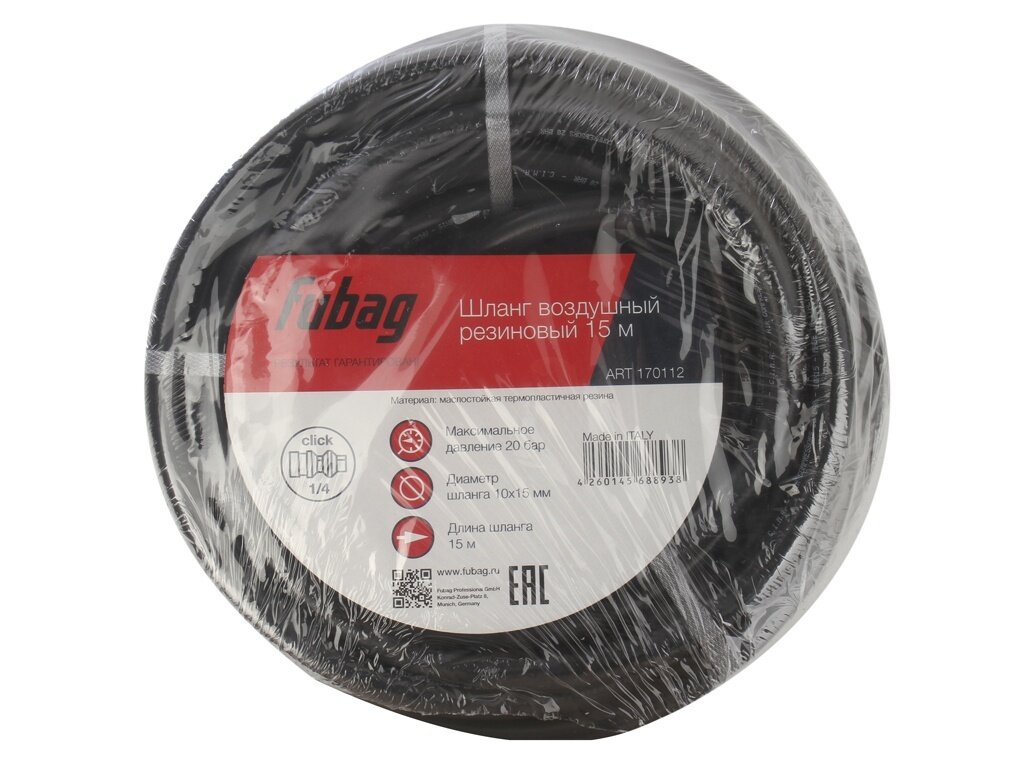 Шланг FUBAG служит удлинителем между компрессором и рабочим инструментом. Достаточная длина оснастки позволяет осуществлять работы на нужном расстоянии от компрессора. Шланг оснащен фитингам — рапид.