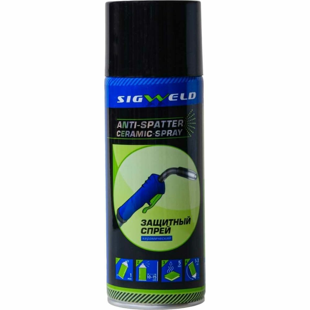 Спрей керамический используется для защиты сварочного наконечника, внешней и внутренней поверхности сопла сварочной горелки, поверхности свариваемых деталей от налипания брызг расплавленного металла, шлака и копоти.Антипригарный спрей образует износостойкое защитное покрытие, предотвращающее налипание окалины на сварочное оборудование. Использование спрея позволит увеличить срок службы сварочной горелки и повысить производительность сварочного процесса.После нанесения защитного спрея образуется белая защитная керамическая пленка. Образовавшееся керамическое покрытие отталкивает брызги и обеспечивает непрерывный процесс сварки в течение 8 часов, без необходимости повторного нанесения. После завершения сварочных работ средство можно без затруднений удалить.Особенности антипригарного спрея SIGWELD:Выдерживает воздействие высоких температур.Увеличивается срок службы горелки, сопла и наконечника.Быстро сохнет, сокращается время на зачистку после работы.Способ применения:Тщательно очистите, высушите и обезжирьте поверхность перед нанесением спрея.Встряхивайте баллон со спреем в течение 1 минуты.Распыляйте на расстоянии 10–15 см до образования тонкой пленки.После применения переверните баллон и распылите продукт в течение нескольких секунд для предотвращения засорения клапана.