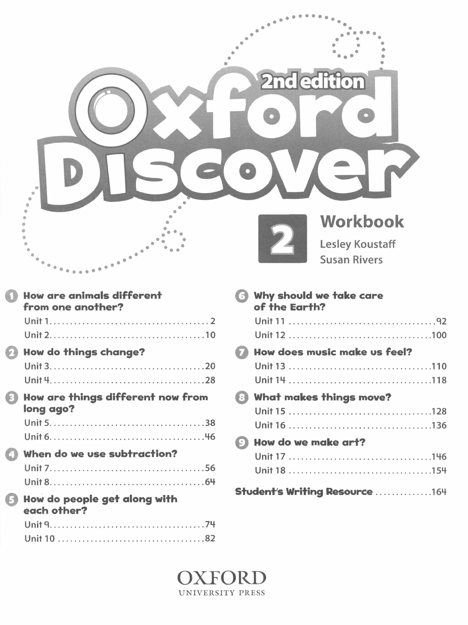 The Oxford Discover Workbook is the perfect partner to the Student's Book, and helps consolidate the material taught in class. It contains further lesson-by-lesson practice for students to complete in their own time, as well as reference material for those who need extra support.