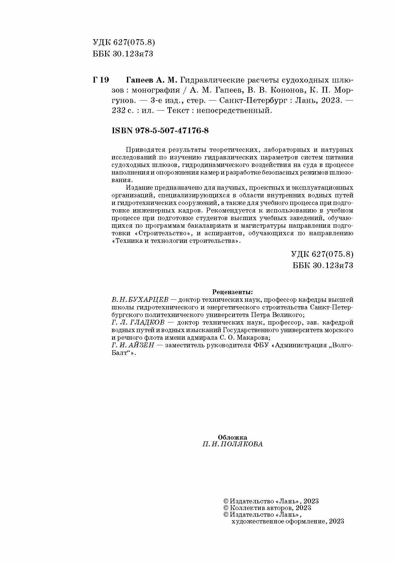Гидравлические расчеты судоходных шлюзов. Монография (Гапеев Анатолий Михайлович, Моргунов Константин Петрович, Кононов Валентин Викторович); Лань, 2023