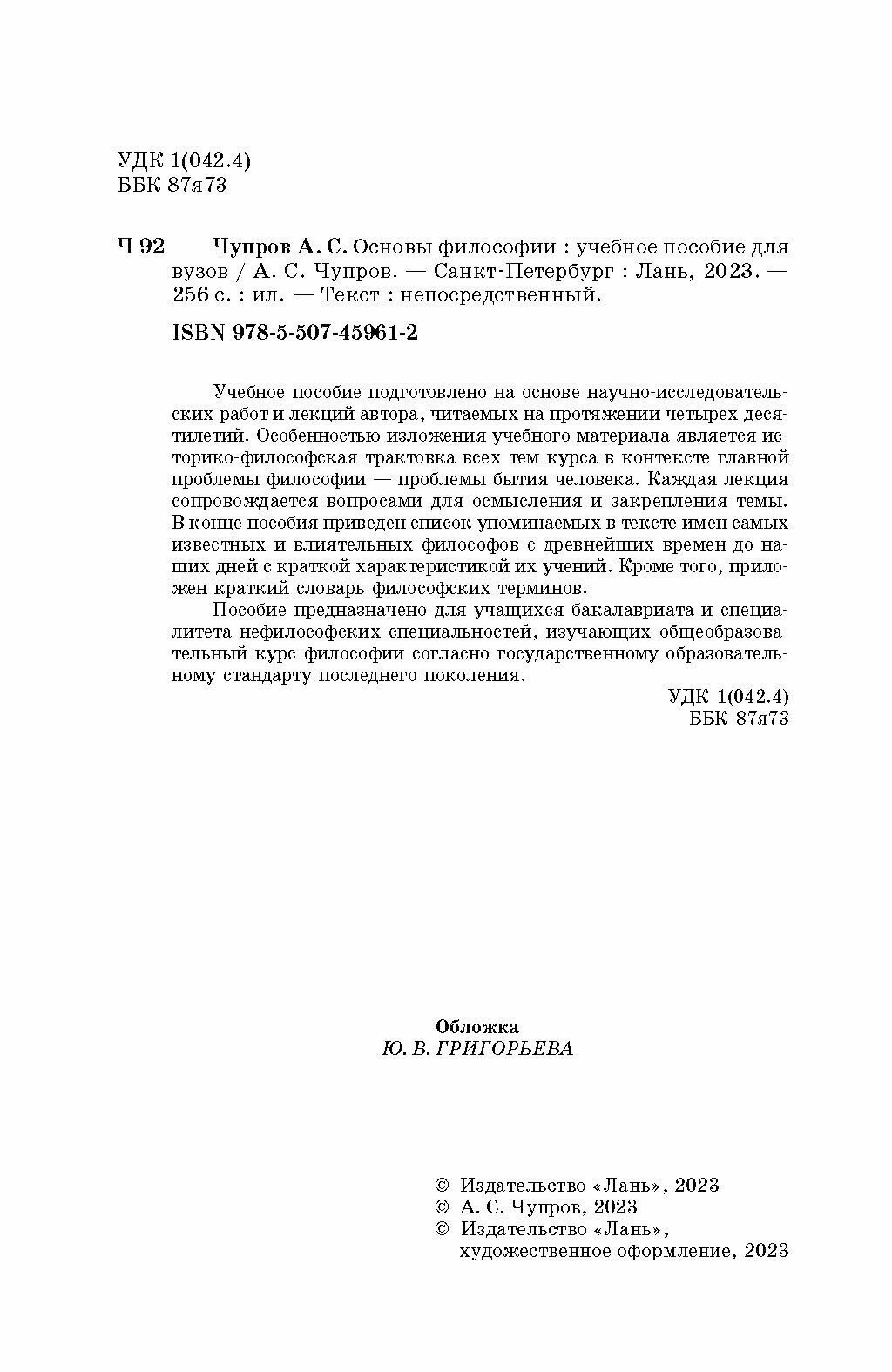 Основы философии. Учебное пособие для вузов (А. С. Чупров); Издательство ЛАНЬ, 2023