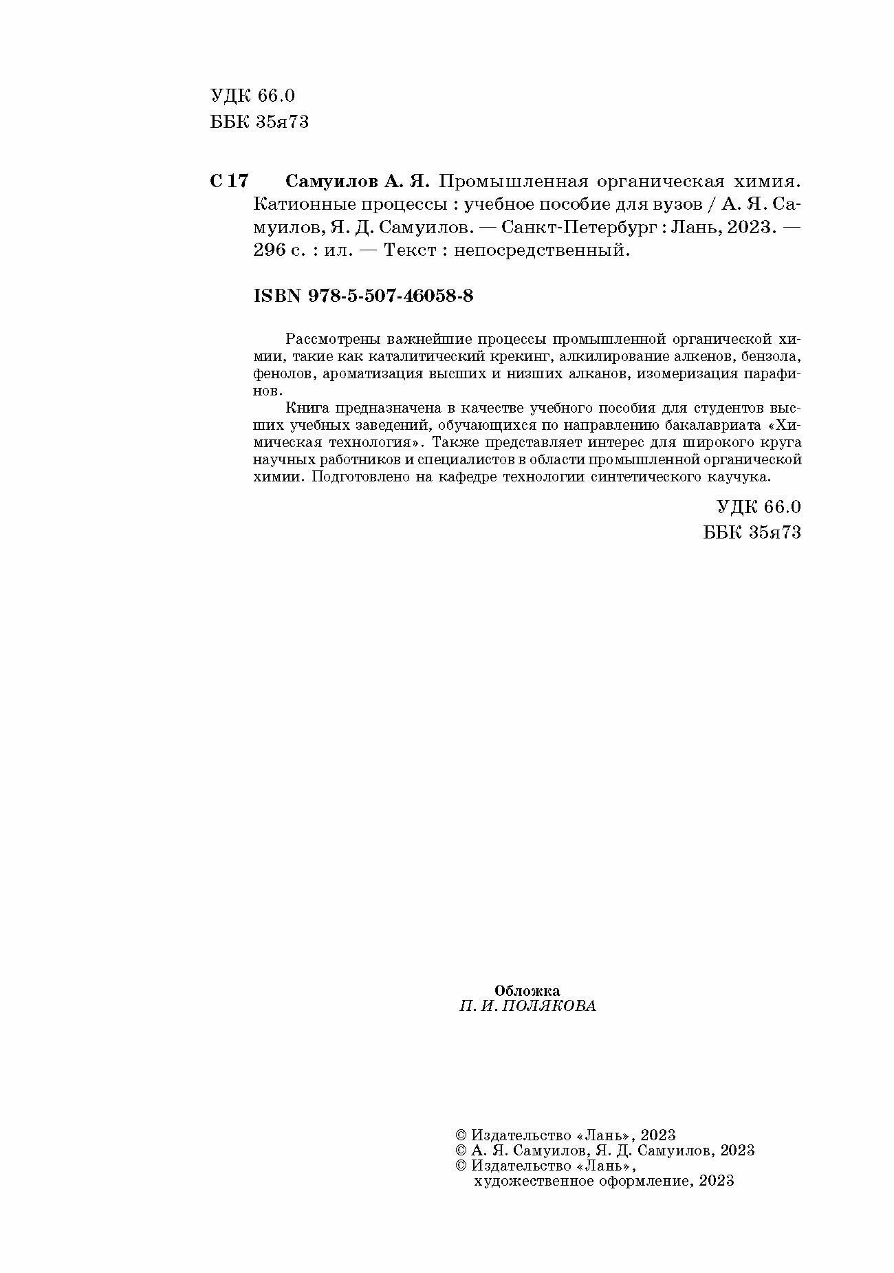 Промышленная органическая химия. Катионные процессы. Учебное пособие для вузов (А. Я. Самуилов); Издательство ЛАНЬ, 2023