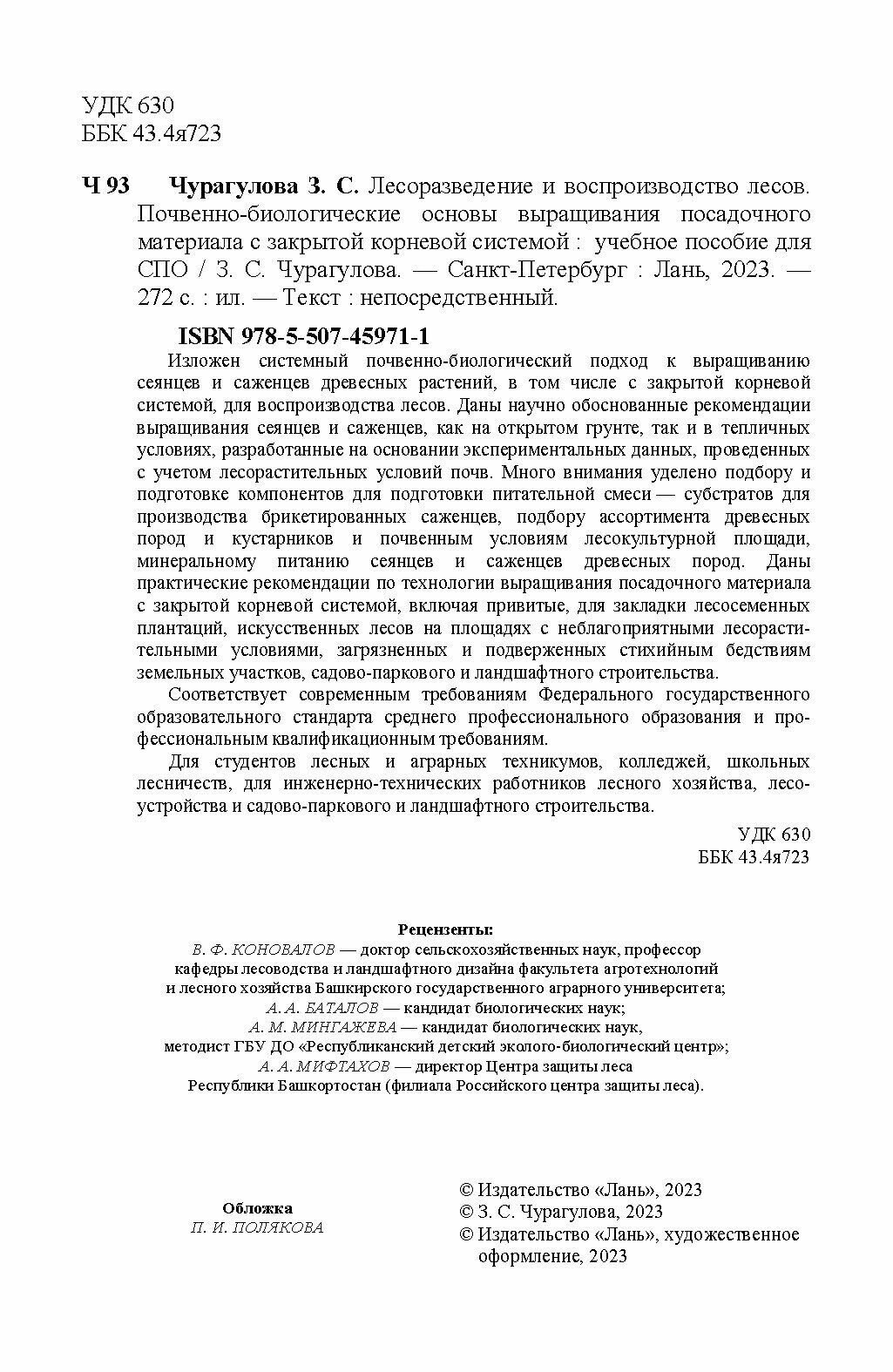 Лесоразведение и воспроизводство лесов. Почвенно-биологические основы выращивания (З. С. Чурагулова); Издательство ЛАНЬ, 2024