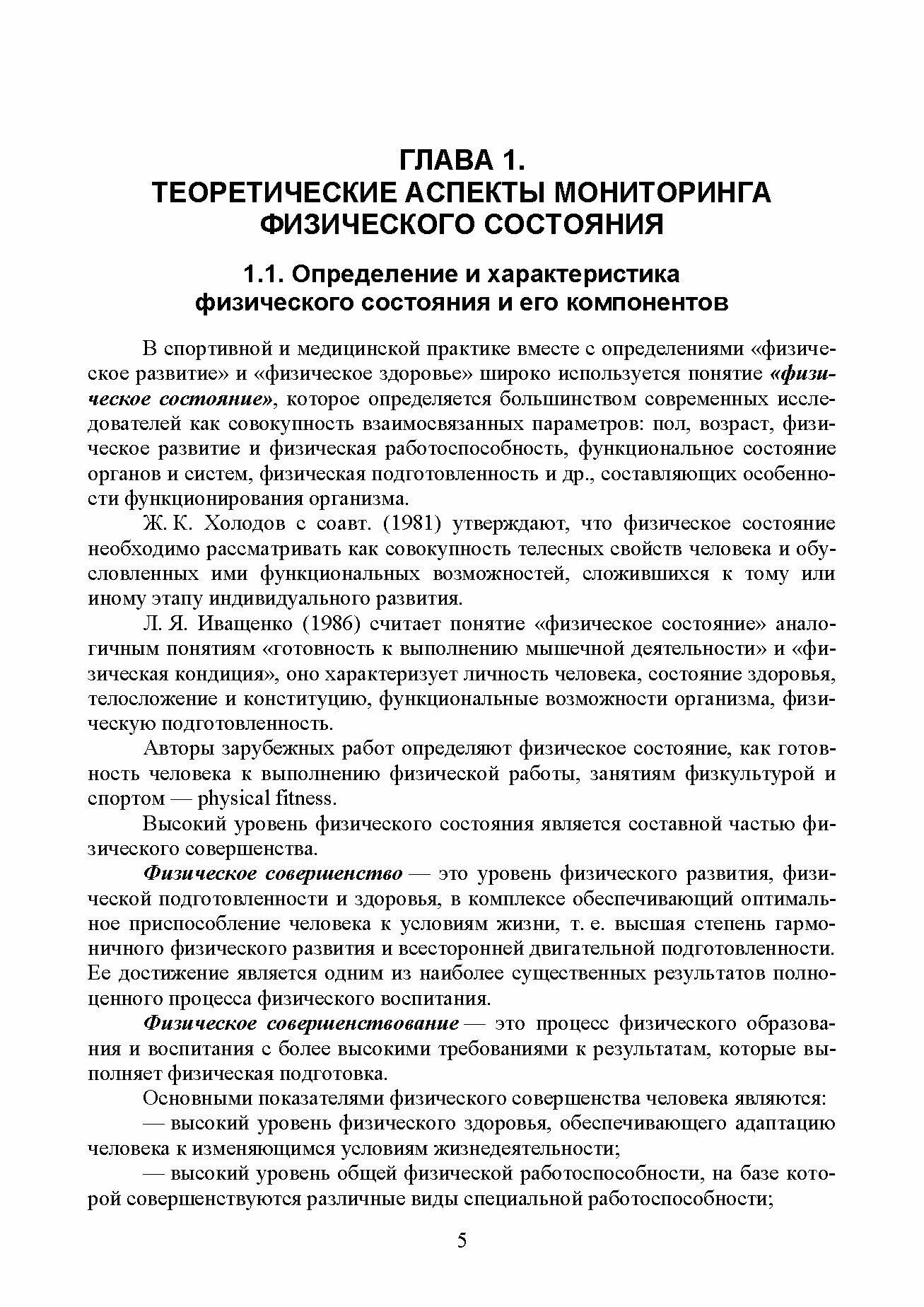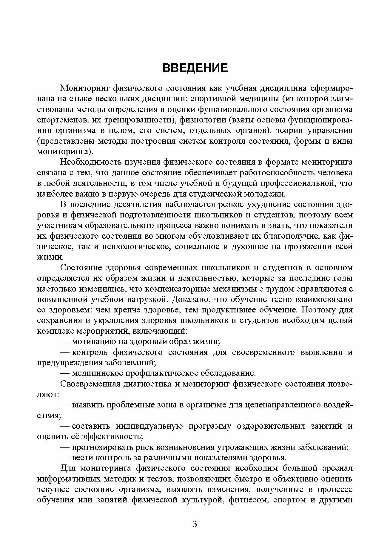 Данное учебное пособие может быть использовано при чтении лекций и проведении практических занятий по дисциплине «Мониторинг физического состояния человека», входящей в учебные планы направлений подготовки: «Физическая культура», «Педагогическое образование». Пособие предназначено для студентов, преподавателей, тренеров и врачей, изучающих проблемы оценки и мониторинга физического состояния.