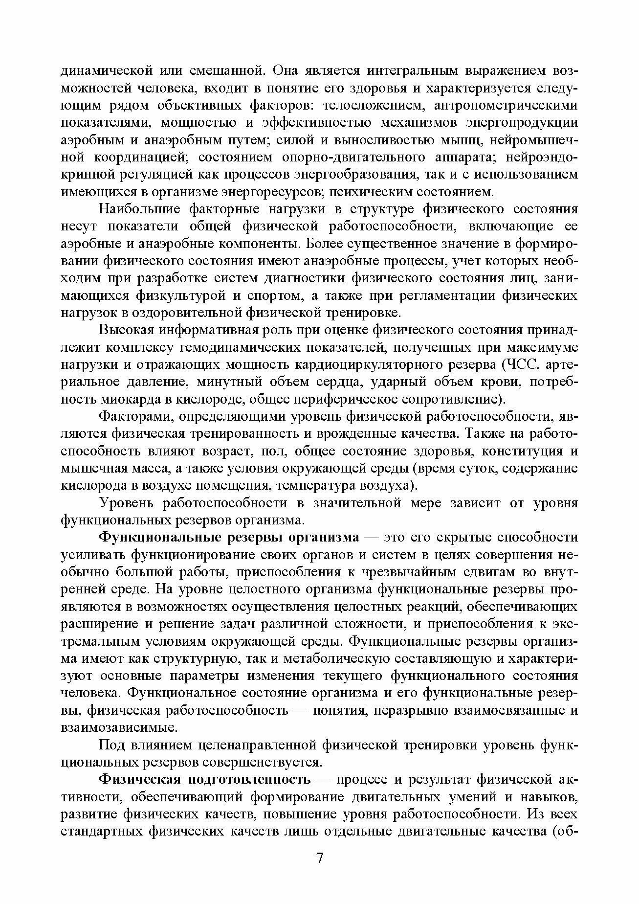 В учебном пособии представлена характеристика основных параметров, составляющих физическое состояние, рассмотрены методы оценки физического развития, физической работоспособности и физической подготовленности, а также некоторых аспектов здоровья, в т.ч. нового способа оценки фитнес-здоровья. Изложены основные направления организации мониторинга физического состояния учащейся молодежи, представлены нормативы физического развития, физической подготовленности и компонентного состава тела в форме центильных таблиц, разработанные авторами в ходе мониторинговых исследований. Издание содержит в структуре методического раздела тестовые задания, практические работы и ситуационные задачи для закрепления теоретического материала, предназначенные для аудиторных и самостоятельных занятий.
