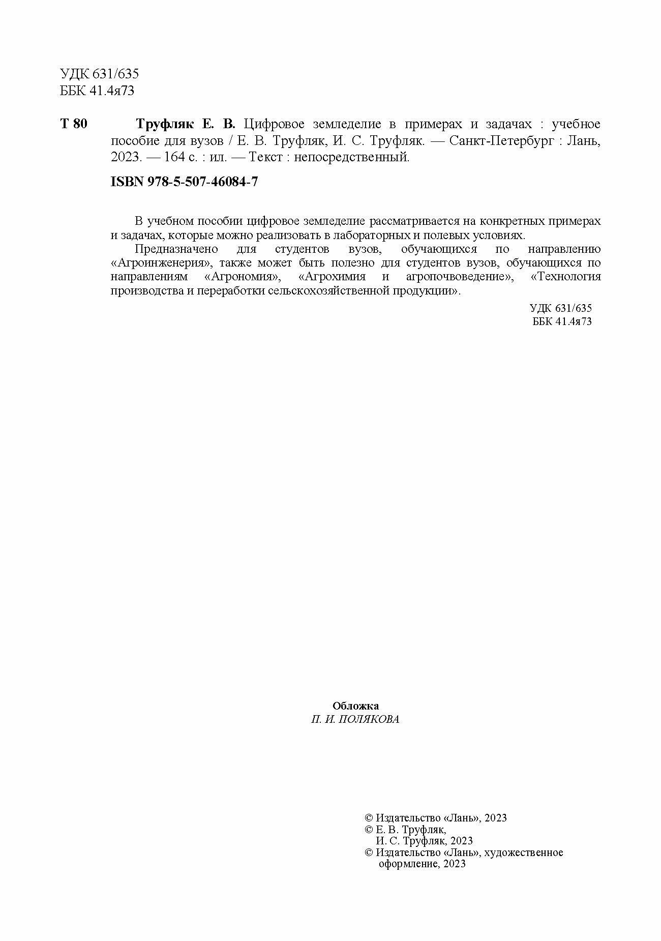 Цифровое земледелие в примерах и задачах. Учебное пособие для вузов (Труфляк Евгений Владимирович, Труфляк Ирина Сергеевна); Лань, 2023