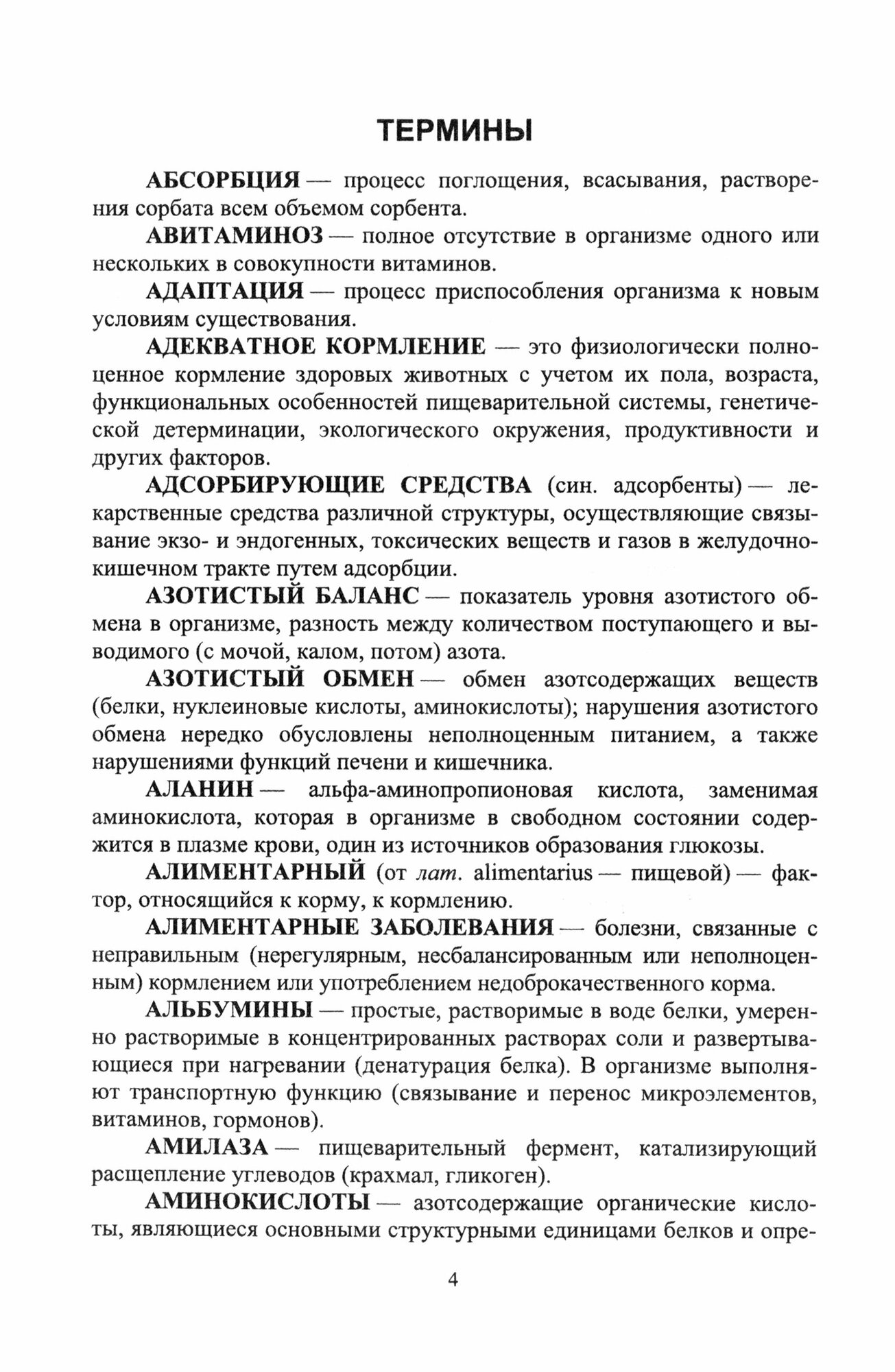 Справочник содержит около 400 слов и выражений, определяющих содержание выделенной учебной дисциплины «Диетология животных». Может быть использован в учебной и практической деятельности студентами вузов всех форм обучения, обучающимися по специальности «Ветеринария», практическими работниками и слушателями системы повышения квалификации в ветеринарных вузах.