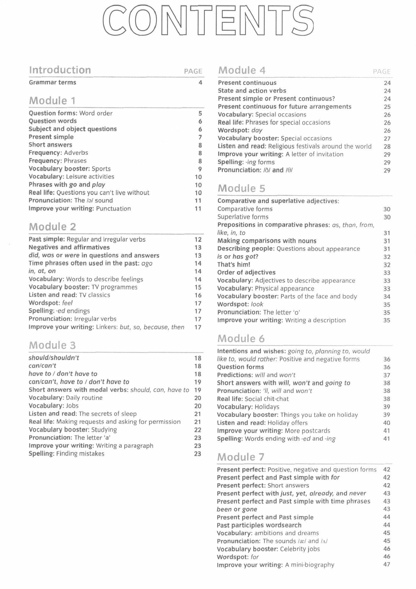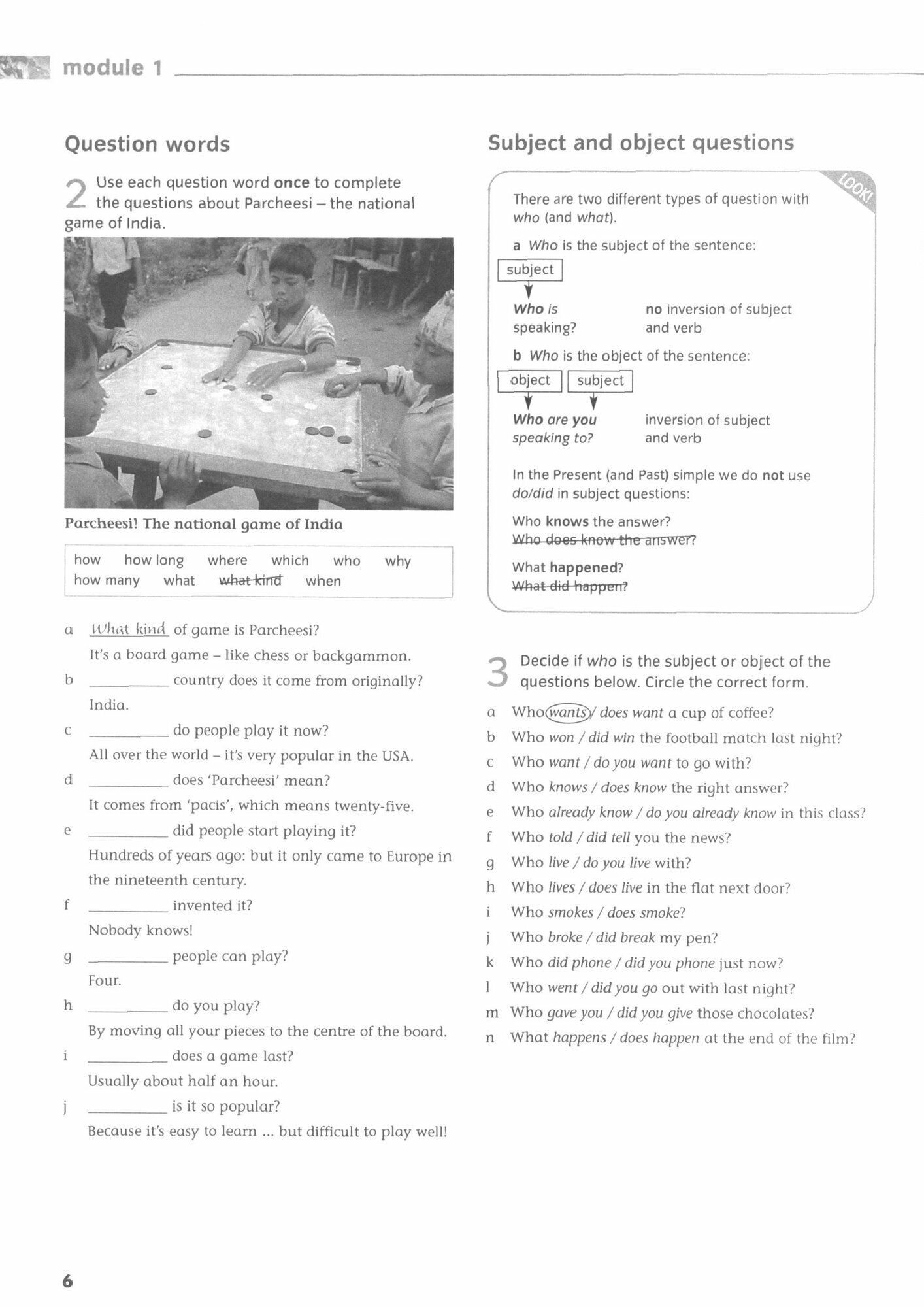 Vocabulary boosters and Wordspots build on the lexical areas covered in the Students' Book