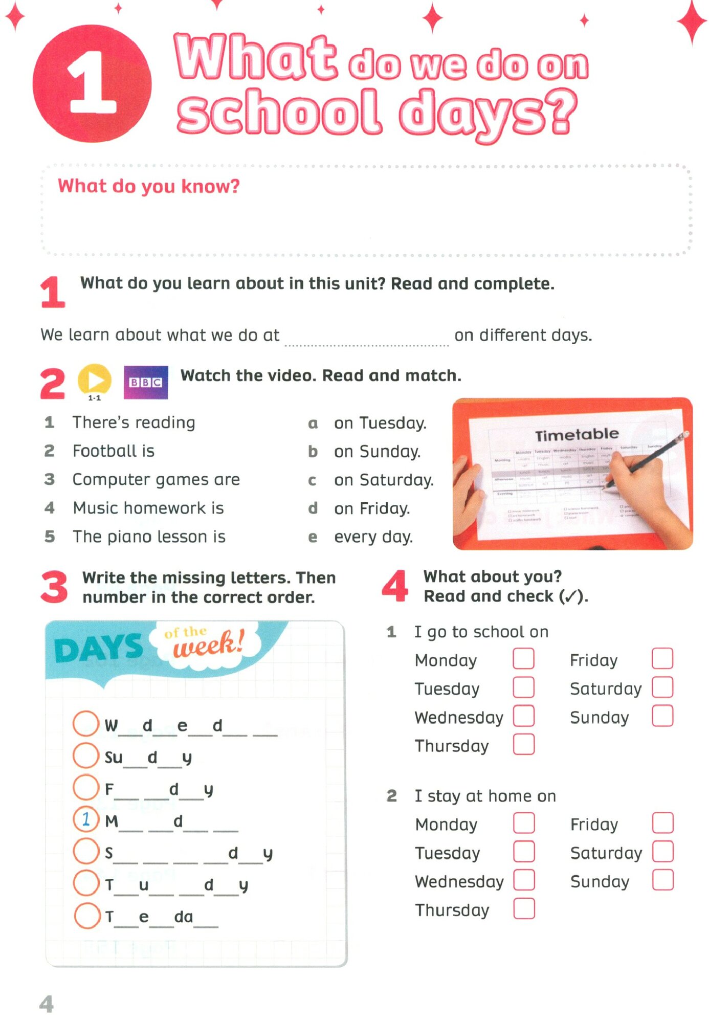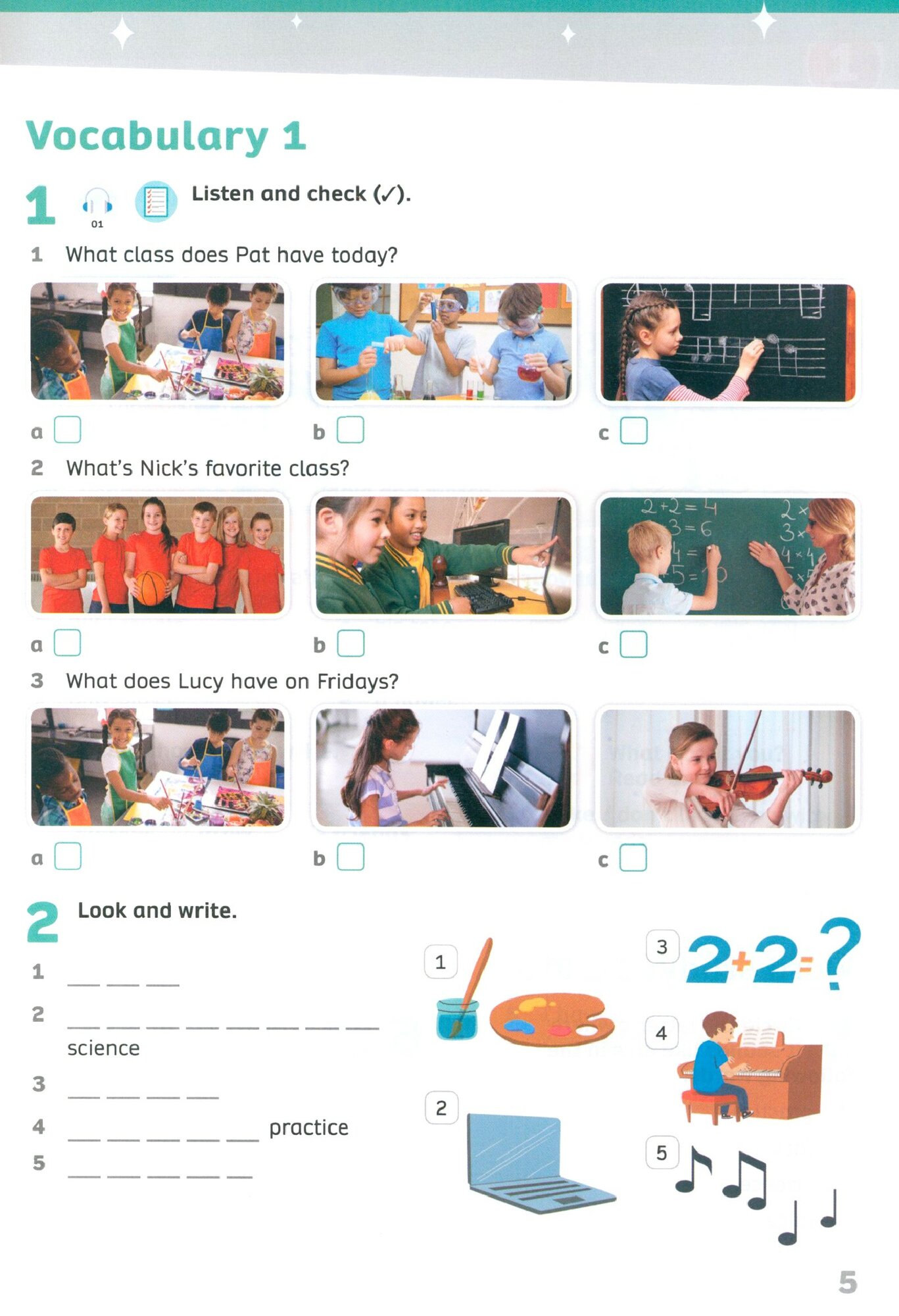 - Workbook comes with an app which allows students and parents to easily access workbook audio and unit opener video.