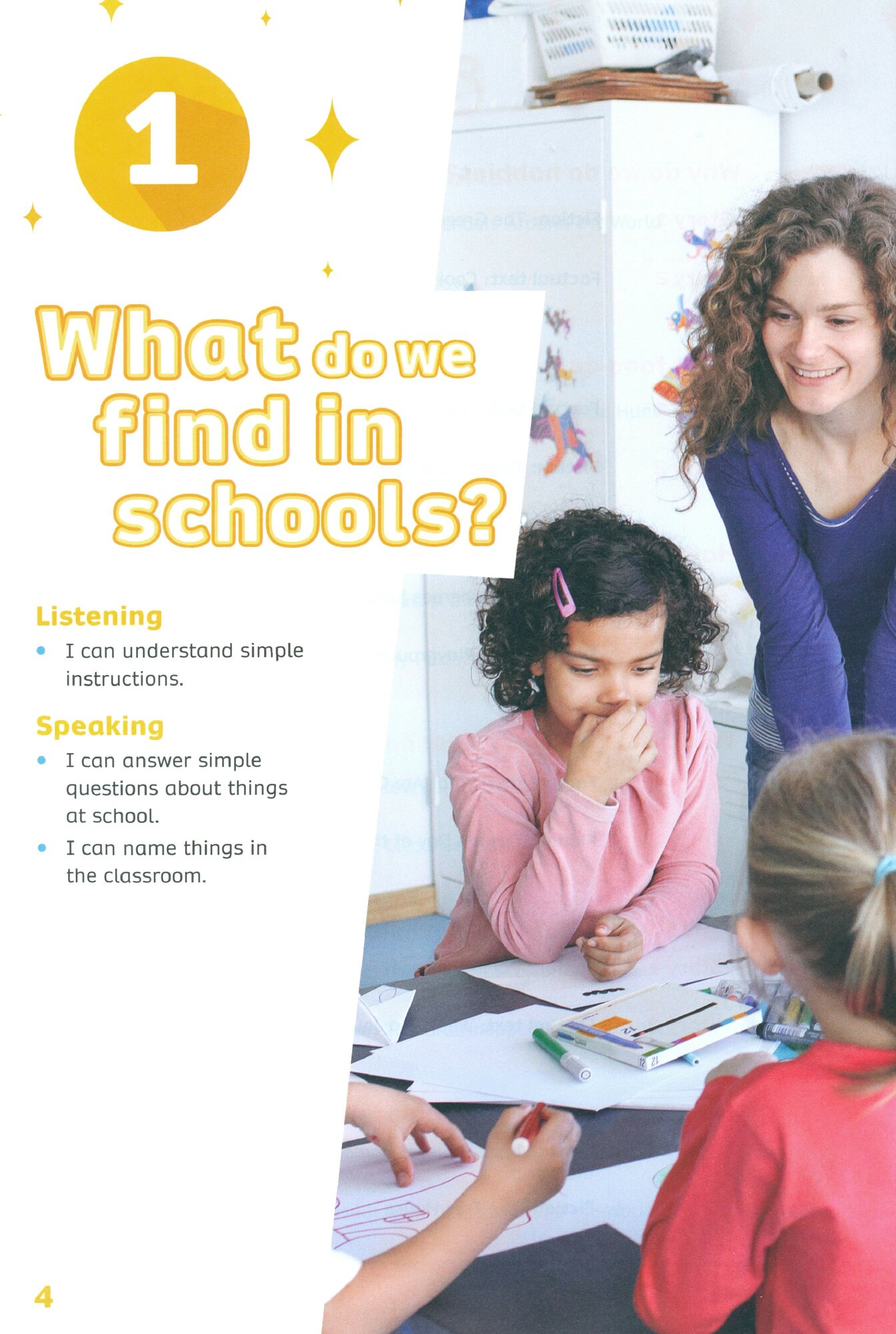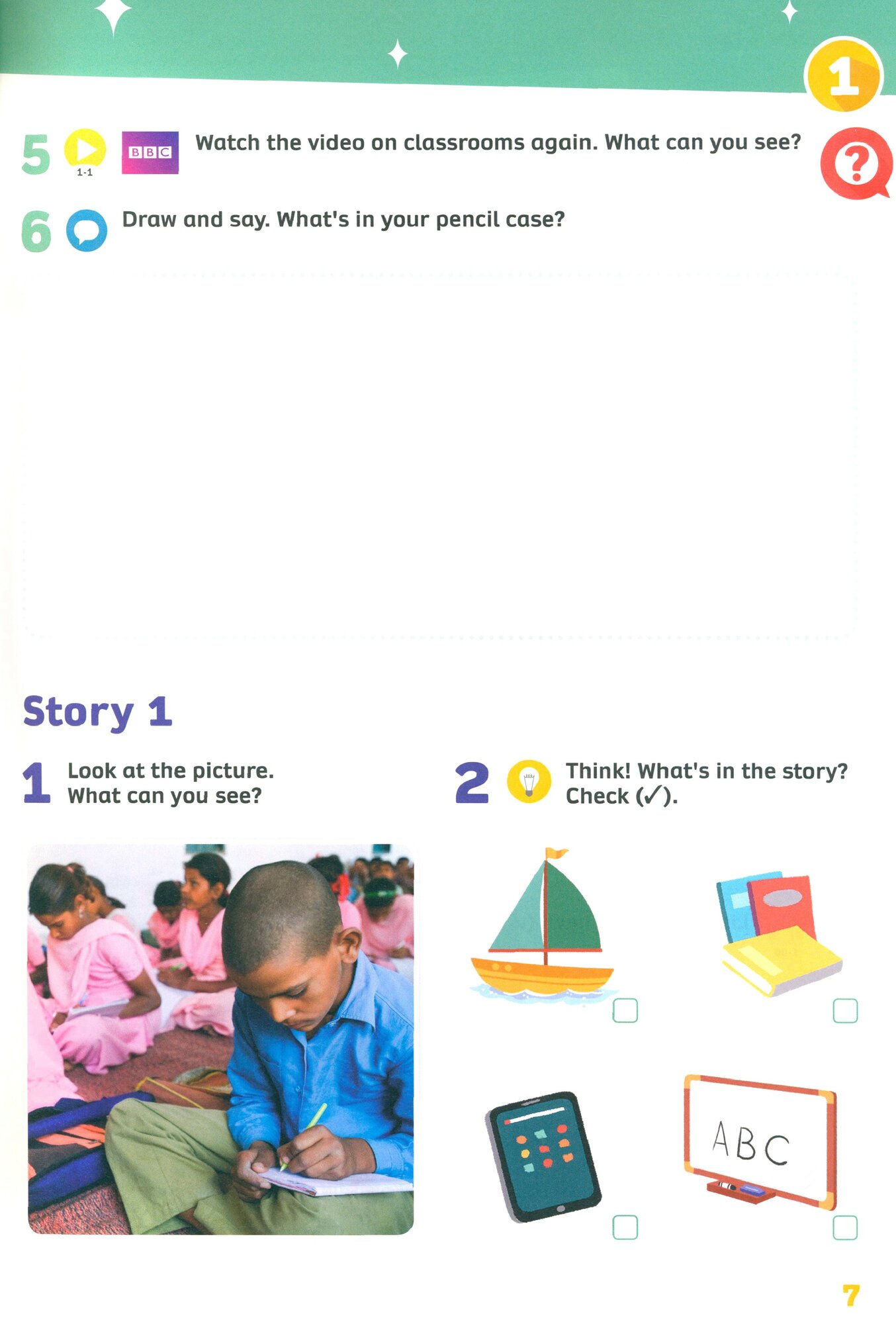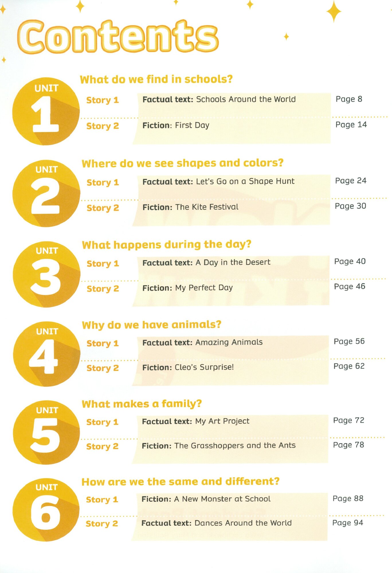 - one text per unit is factual, allowing students to gain non-ELT knowledge, and another text is a story focusing on a value