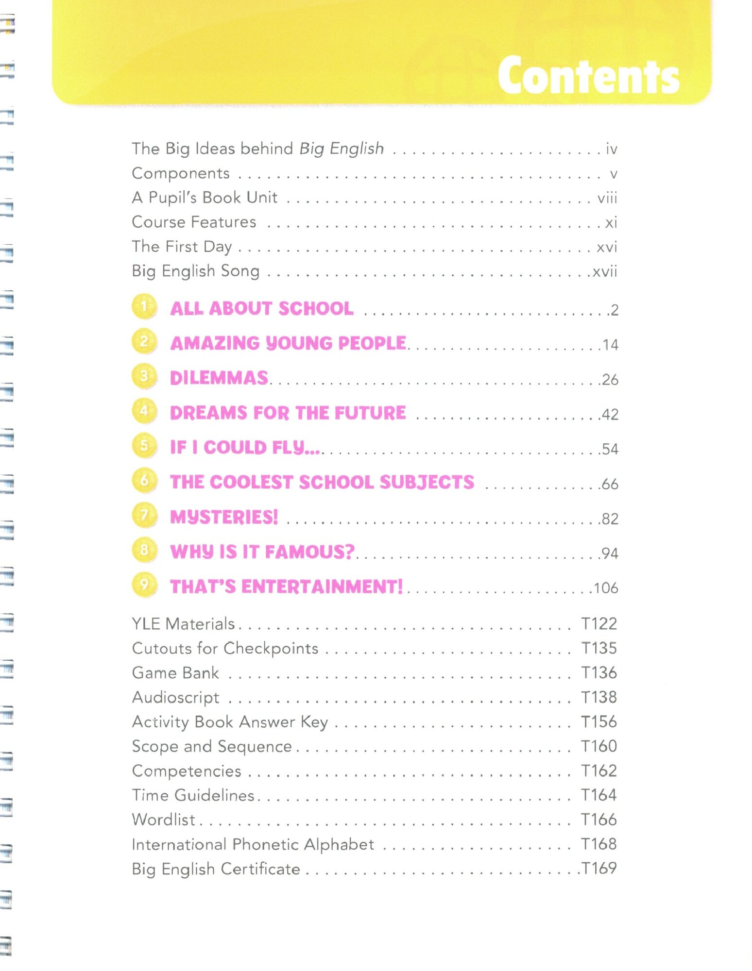 Share in your pupils' success. Watch them excel in English Big English prepares pupils for the challenges they will find in today's world: CLIL : because pupils are learning English and so much more 21st Century Skills : because pupils want to get ahead and need to be prepared for the world around them Assessment for Learning : because confidence leads to success Think Big! Dream big! Big English