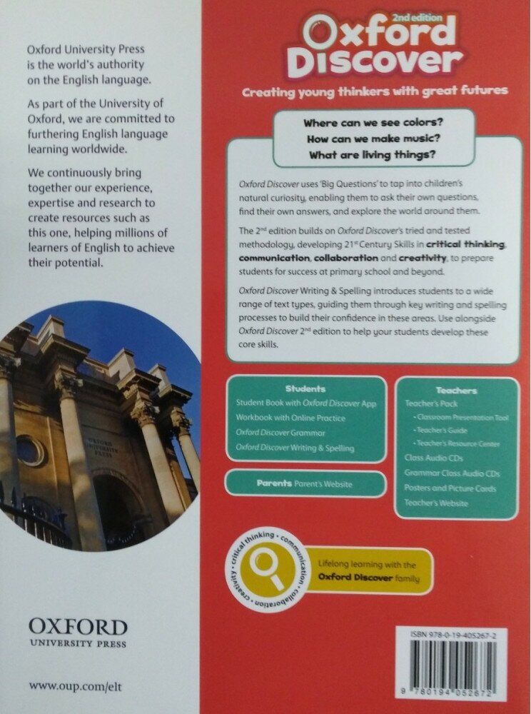 2-е издание Oxford Discover основывается на испытанной методологии первого издания и развивает навыки критического мышления, общения, сотрудничества и креативности для подготовки учащихся к будущему успеху в начальной школе и за ее пределами.
