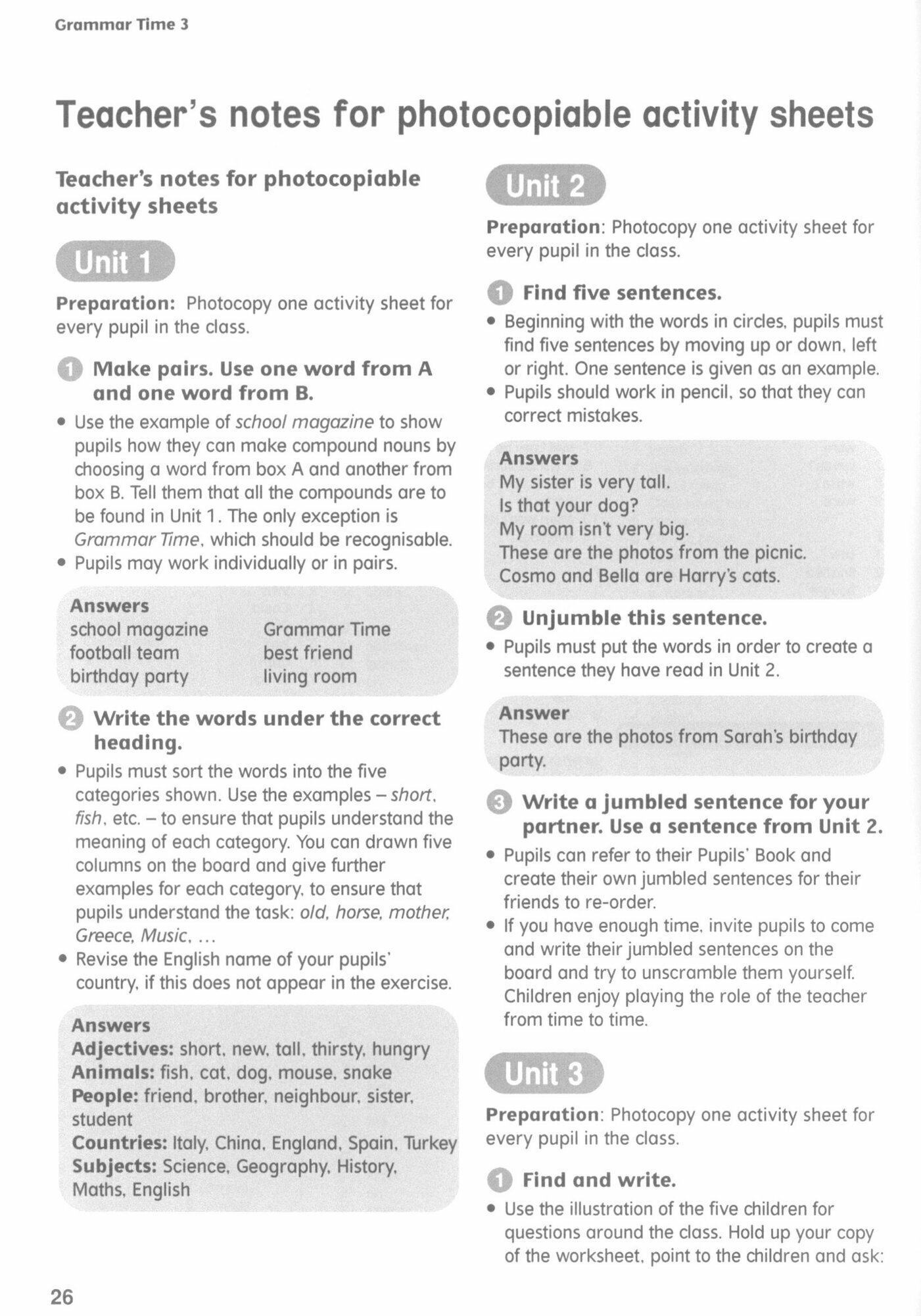 Grammar Time 3 Teacher's Book with helpful introduction, answer key and additional materials gives teachers all the support they need to use the book successfully.