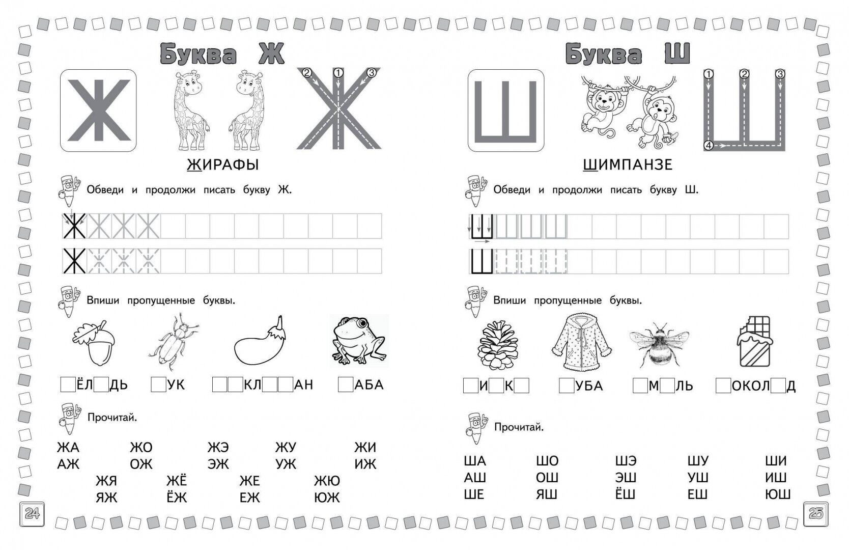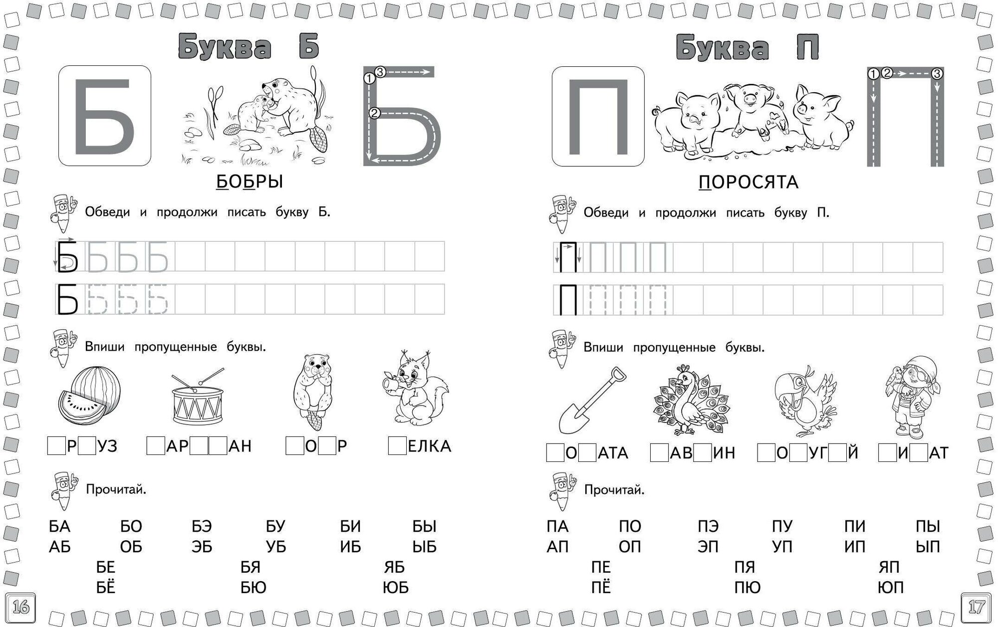Задача прописей для дошкольников - не только научить ребенка писать, но и читать. Выполняя увлекательные игровые задания, малыш будет тренироваться правильно писать буквы, находить их в словах, составлять слоги и постепенно осваивать навык чтения. Написание букв способствует не только их быстрому запоминанию, но и вырабатывает у ребёнка навык чистописания и орфографическую зоркость, которая является важнейшим условием грамотного письма. Забавные позитивные картинки доставят детям удовольствие и будут способствовать получению высокого результата. Кроме того, пропись поможет развить у ребенка мелкую моторику, графические навыки, усидчивость, внимание и терпение - навыки, которые очень важны для обучения в школе.