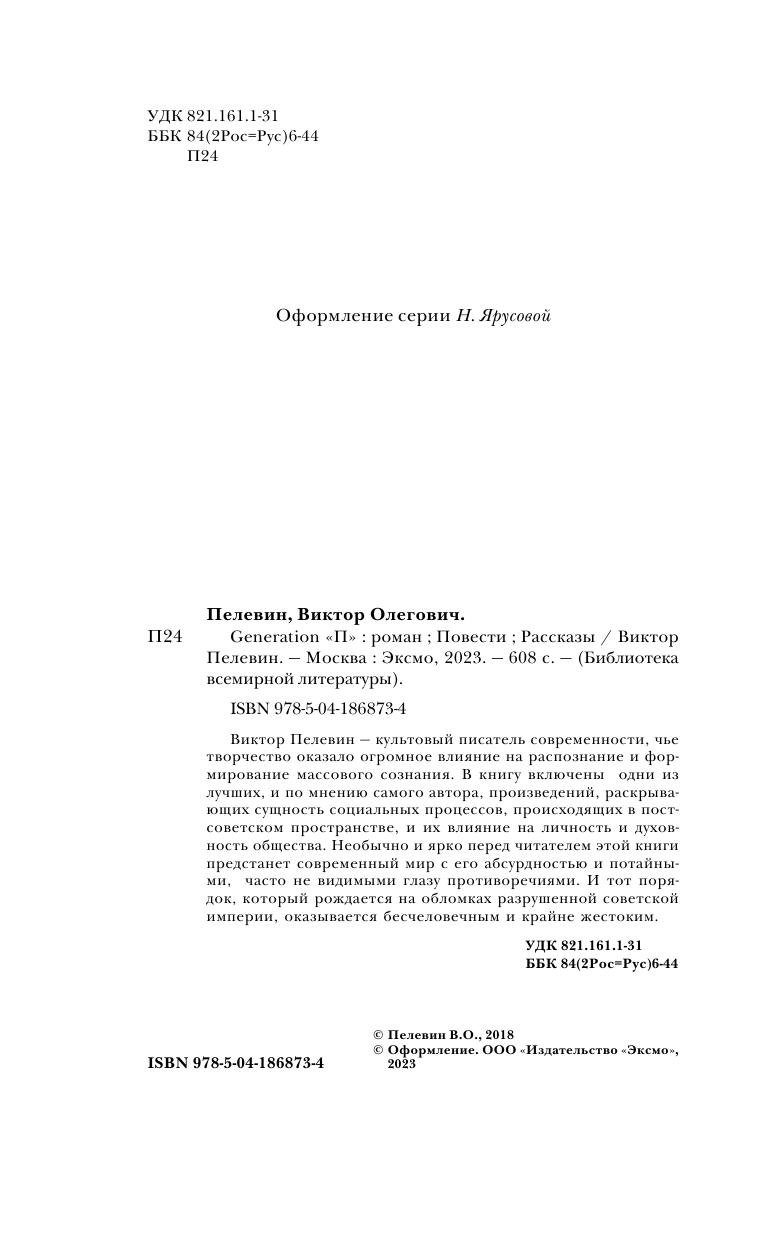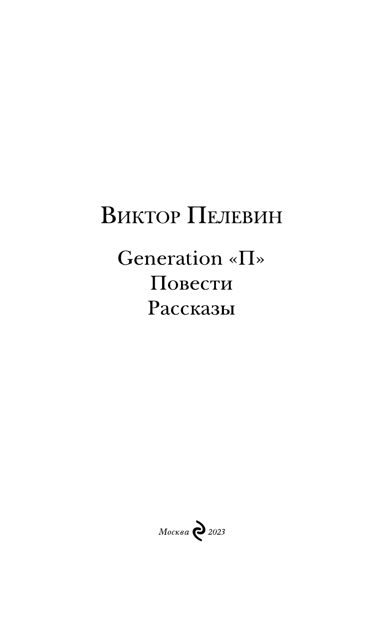 Generation "П". Повести. Рассказы (Пелевин Виктор Олегович); ООО "Издательство "Эксмо", 2023