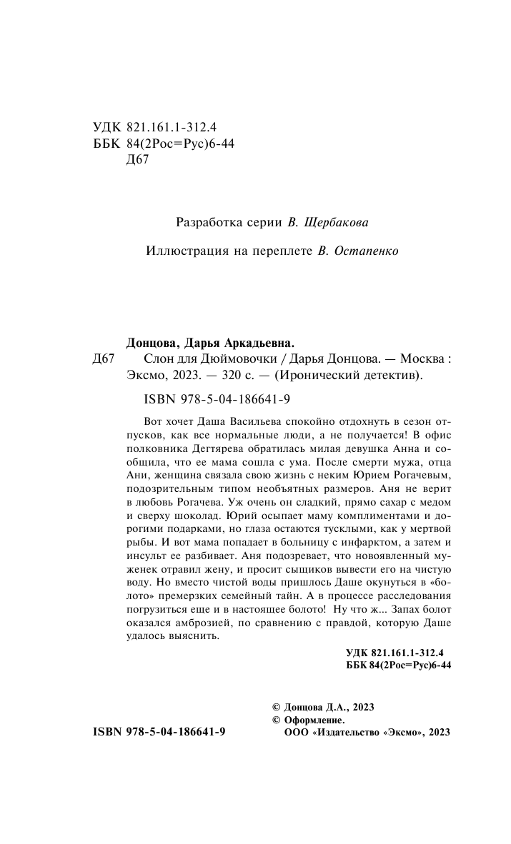 Книга: Слон для Дюймовочки (Донцова Дарья Аркадьевна); ООО "Издательство "Эксмо", 2023
