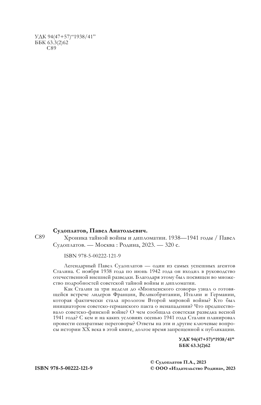 Хроника тайной войны и дипломатии. 1938-1941 годы (Павел Анатольевич Судоплатов); Родина Издательство ООО, 2023