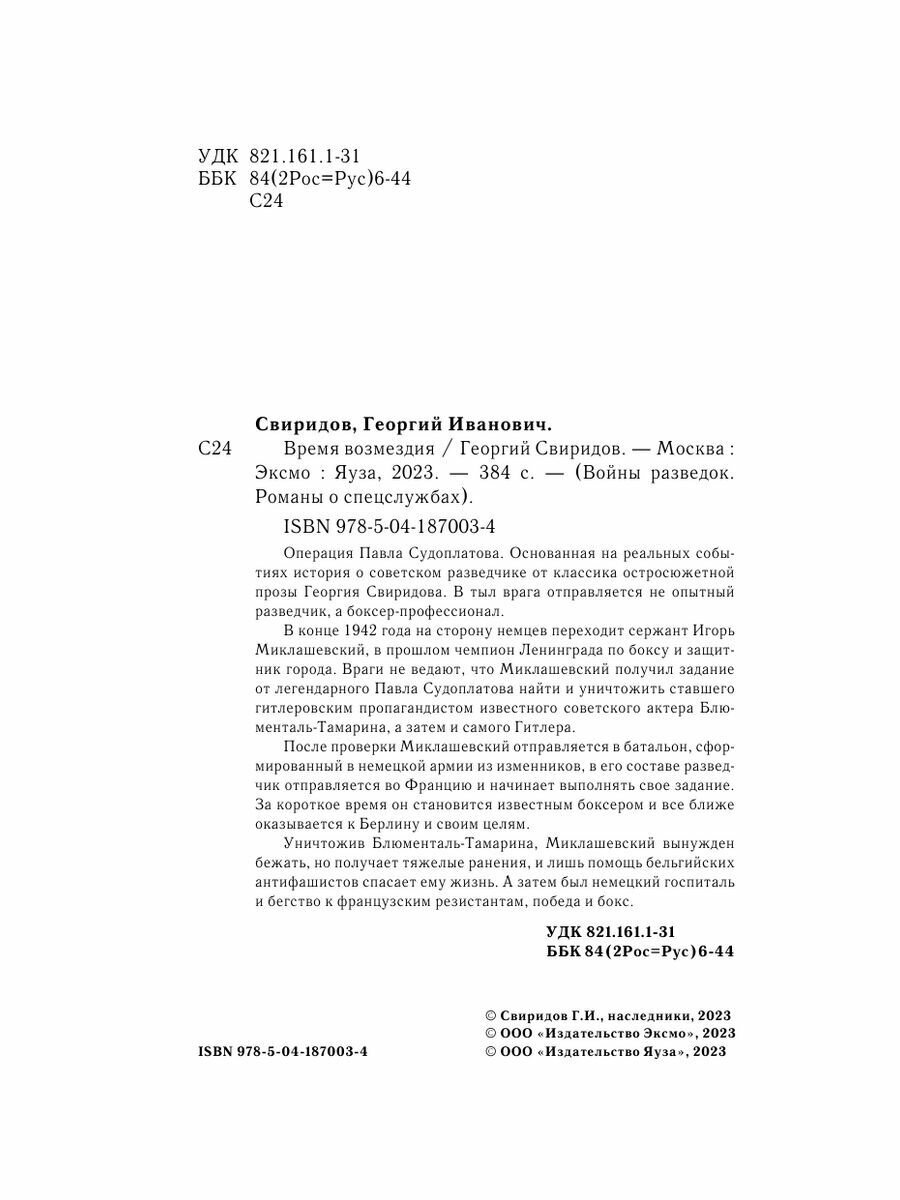 Книга: Время возмездия (Георгий Свиридов); Эксмо, Редакция 1, 2023