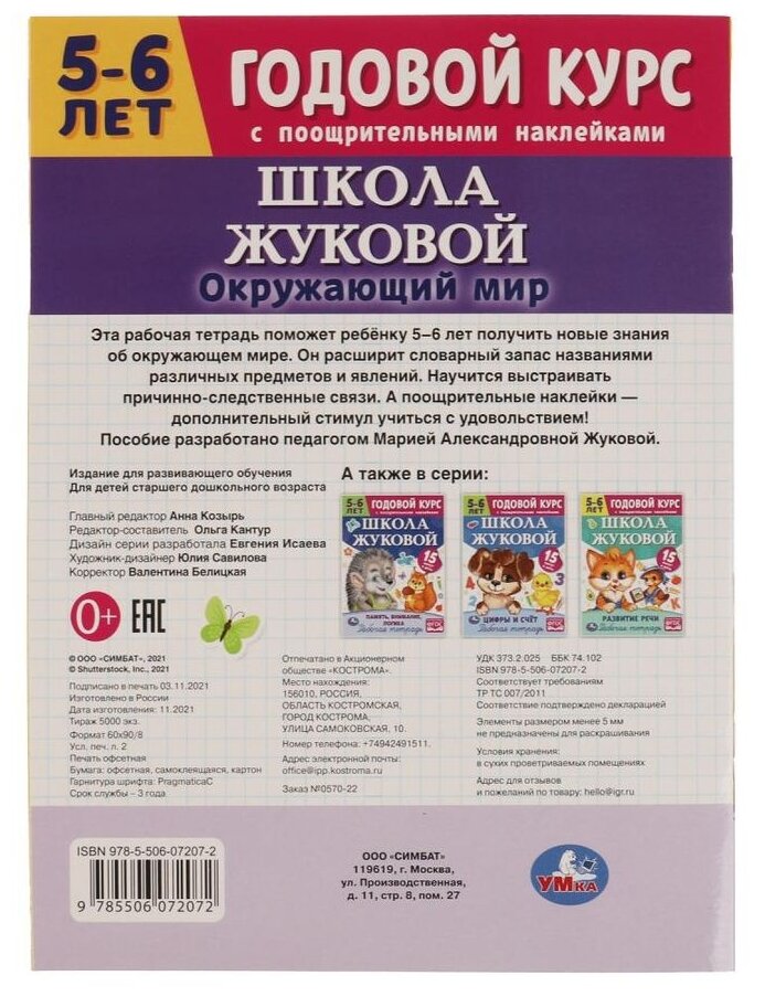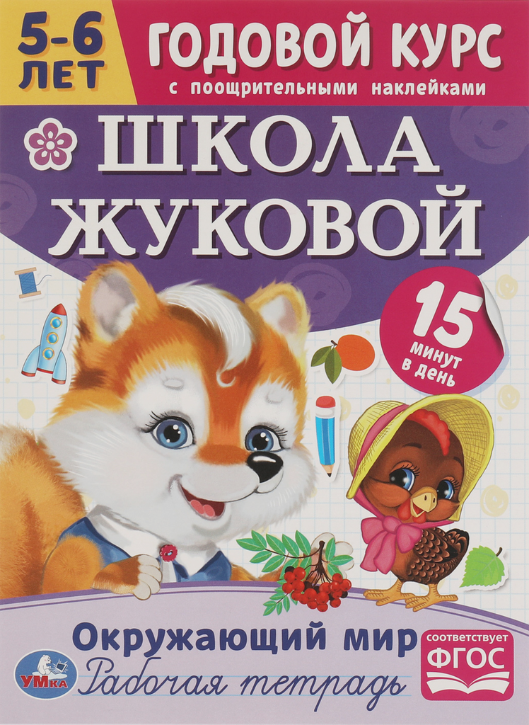Рабочая тетрадь с поощрительными наклейками. Школа Жуковой. Годовой курс. 5-6 лет. Окружающий мир ТМ «УМка»: