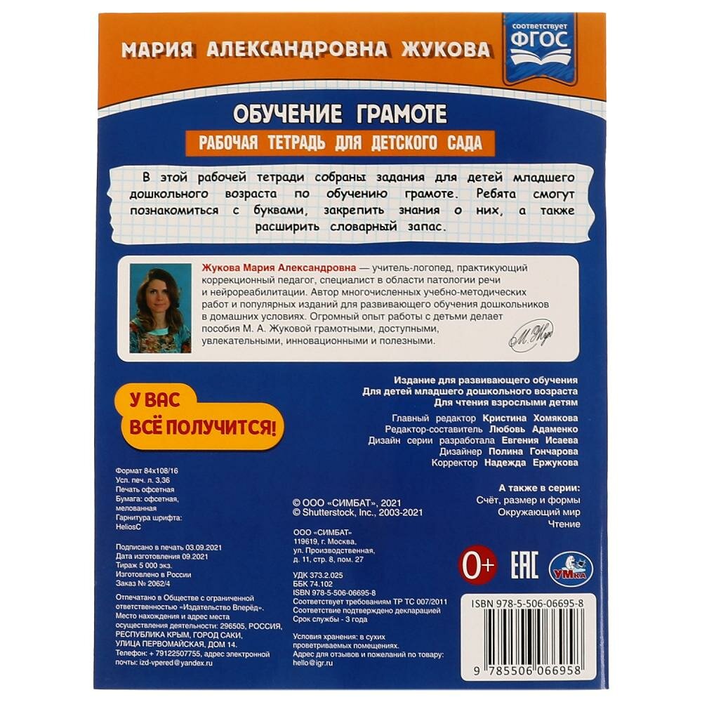 Рабочая тетрадь для детского сада. Обучение грамоте. М.А. Жукова ТМ «УМка»: