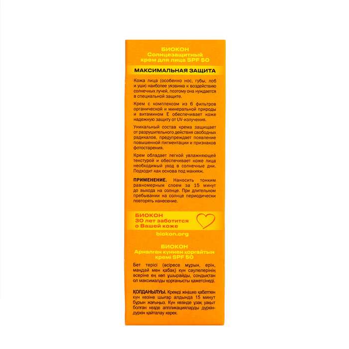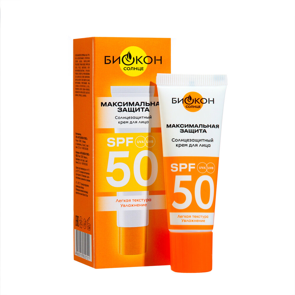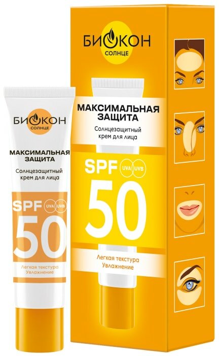 Крем солнцезащитный для лица Биокон SPF 50 25мл Биокон плюс