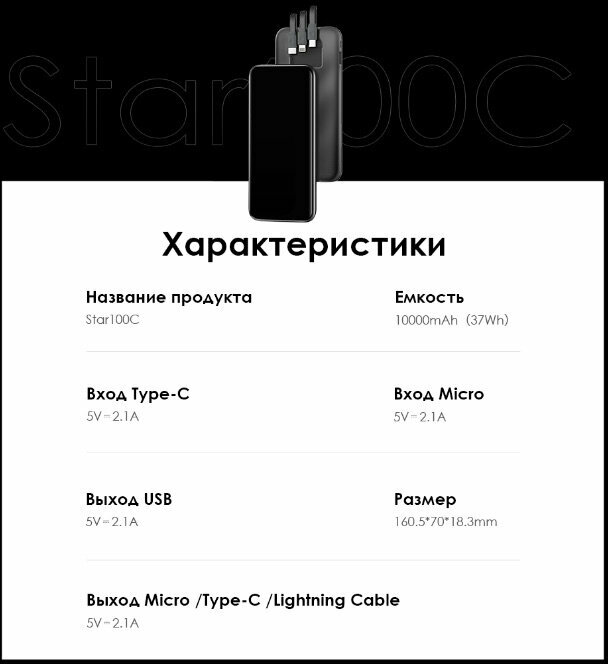 | Ёмкость | 10000 мАч |