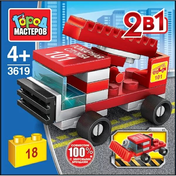 Сервис сравнения цен СкидкаГИД предлагает сравнить цены на товар «Конструктор Город мастеров Пожарная машина 2 в 1»