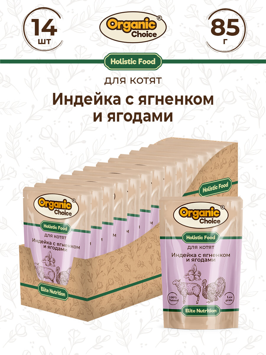 Влажный корм для котят Organic Сhoice индейка с ягненком и ягодами в соусе 85 г