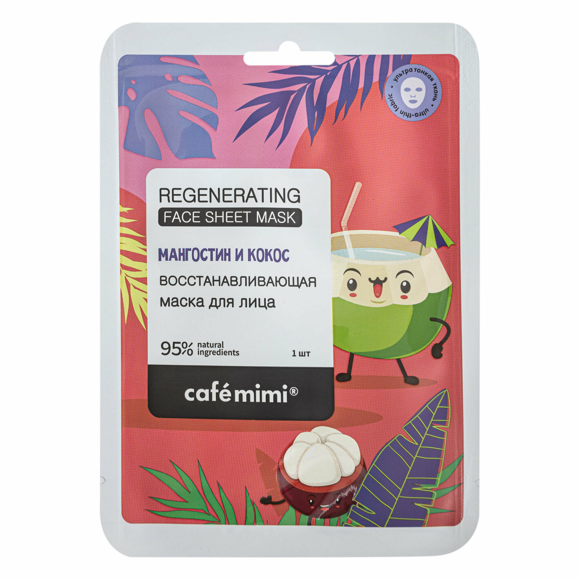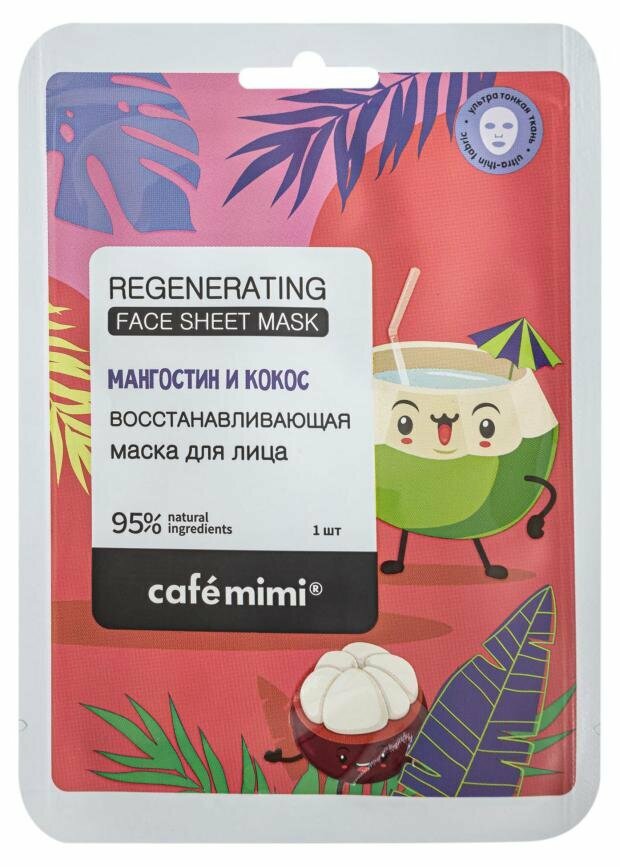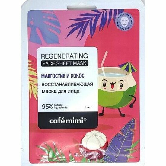 Маска тканевая для лица Cafe Mimi Восстанавливающая Мангостин и кокос 21 г