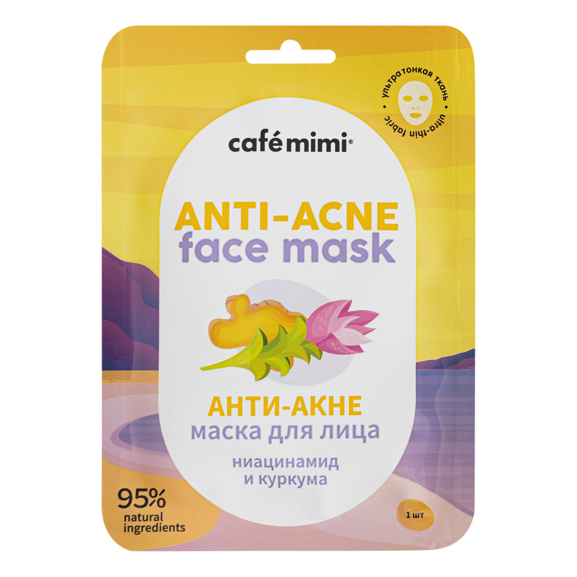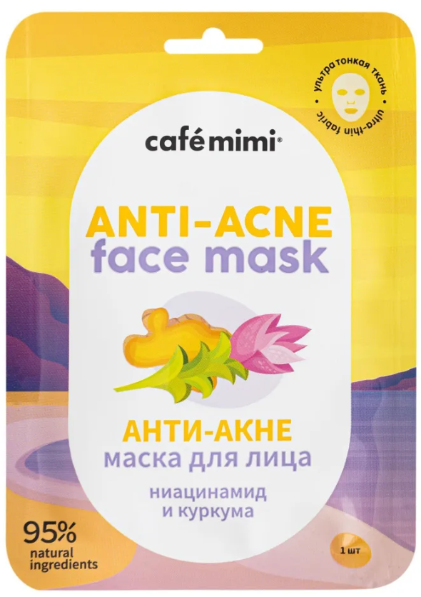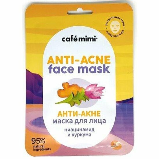 Маска тканевая для лица Cafe Mimi Анти-Акне ниацинамид и куркума 21 г