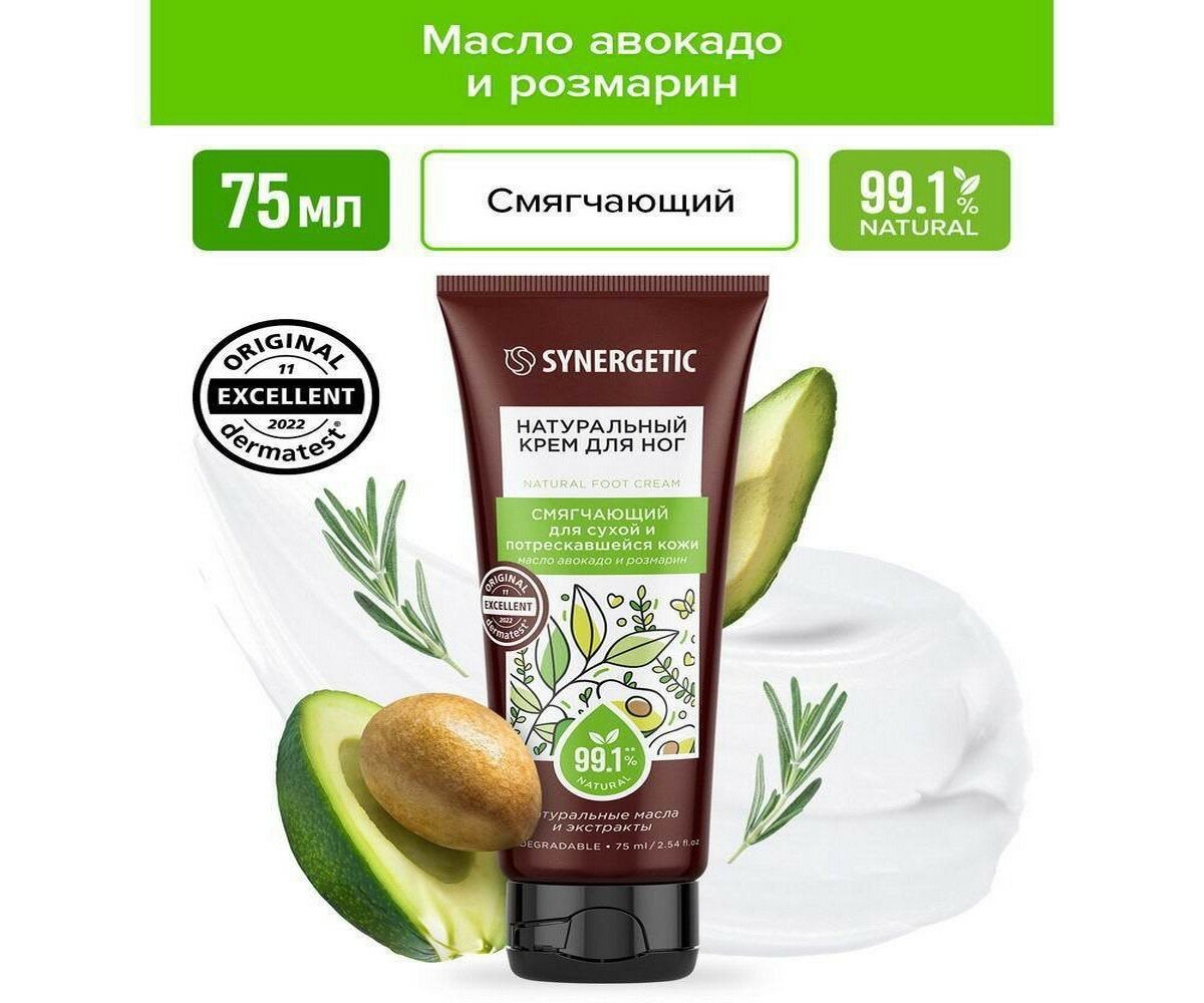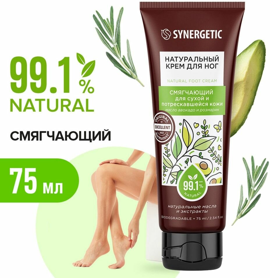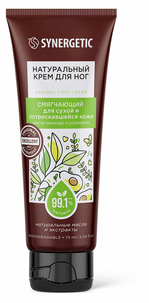 Крем для ног Synergetic Смягчающий для сухой и потрескавшейся кожи 75 мл