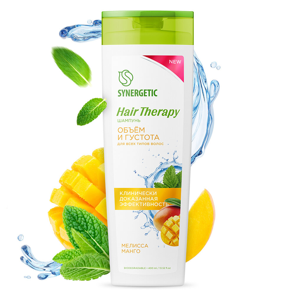 Шампунь SYNERGETIC Объем и густота волос HAIR THERAPY деликатно очищает и защищает волосы и кожу головы. Активные компоненты эффективно ухаживают за волосами, придавая им силу, гладкость и естественный блеск. Цинк стабилизирует работу сальных желез и улучшает состояние кожи головы. Протеины пшеницы и сои питают и укрепляют тонкие ослабленные волосы. Экстракты мелиссы и манго эффективно увлажняют, восстанавливают и укрепляют структуру поврежденных волос, придавая им блеск, гладкость, объем и эластичность. Мультифункциональный компонент натурального происхождения софоролипид деликатно очищает и сохраняет естественный микробиом кожи. Мягкий эмульгатор изомерат сахарида усиливает барьерные свойства кожи за счет глубокого увлажнения. Физиологичный уровень pH 5,5 способствует устранению сухости кожи головы и гарантирует безопасность при частом использовании средства даже для чувствительной кожи. Эффективность шампуня при регулярном использовании подтверждена аккредитованным испытательным центром.
